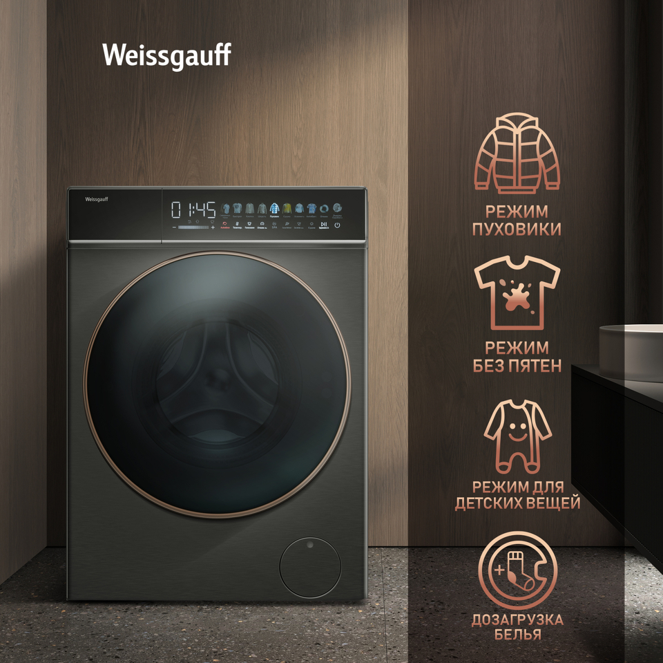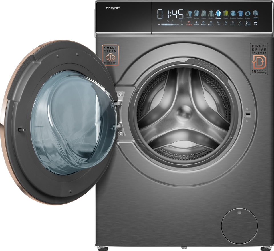 Отдельностоящая стиральная машина Weissgauff с функцией сушки, выполненная в цвете "серебристый металлик", оснащенная прямым приводом, инверторным двигателем и функцией пара, имеющая показатели загрузки до 11 кг белья при стирке и до 6 кг белья при сушке, скорость отжима до 1400 оборотов в минуту, а также цветной дисплей SMART SCREEN, функции автодозирования и озонирования - это одна из наиболее передовых моделей Weissgauff в категории стиральных машин!