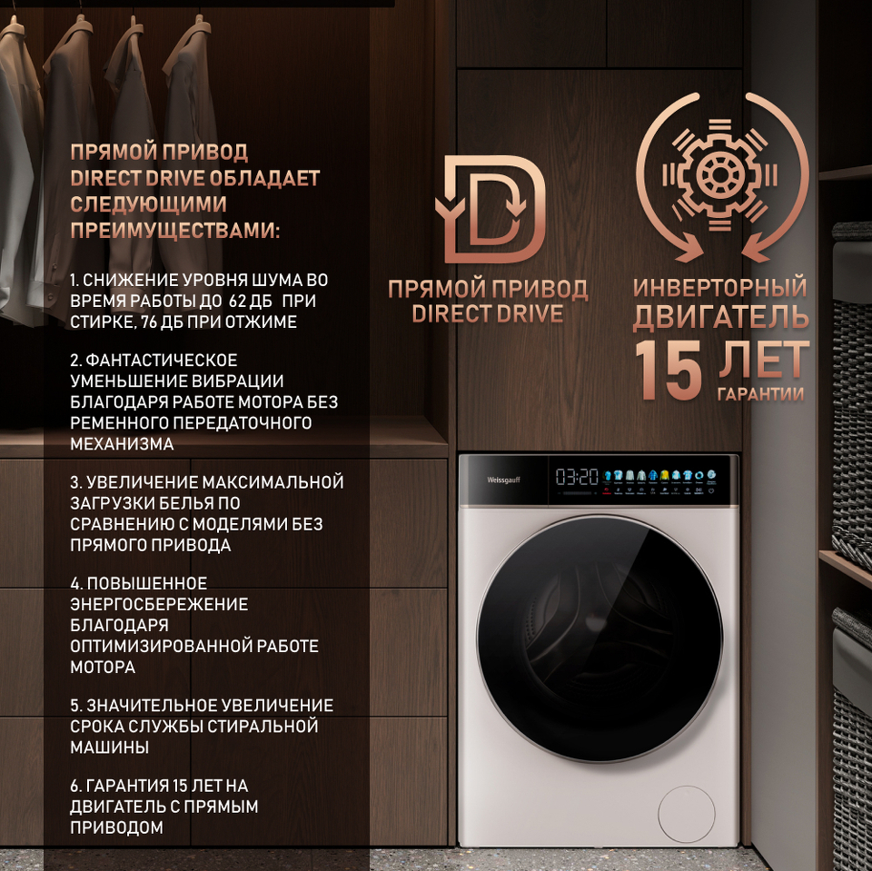 15 лет гарантии на инверторный двигатель с прямым приводом - это живое подтверждение немецкой уверенности Weissgauff в качестве выпускаемой нами продукции!
