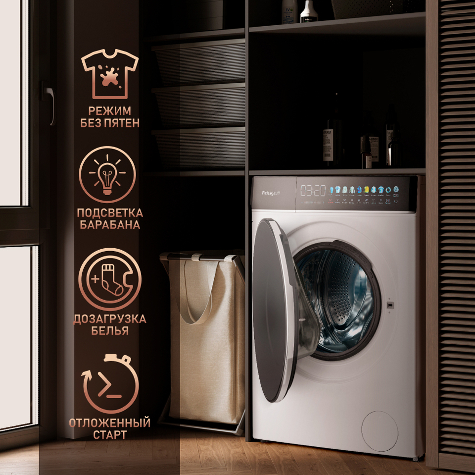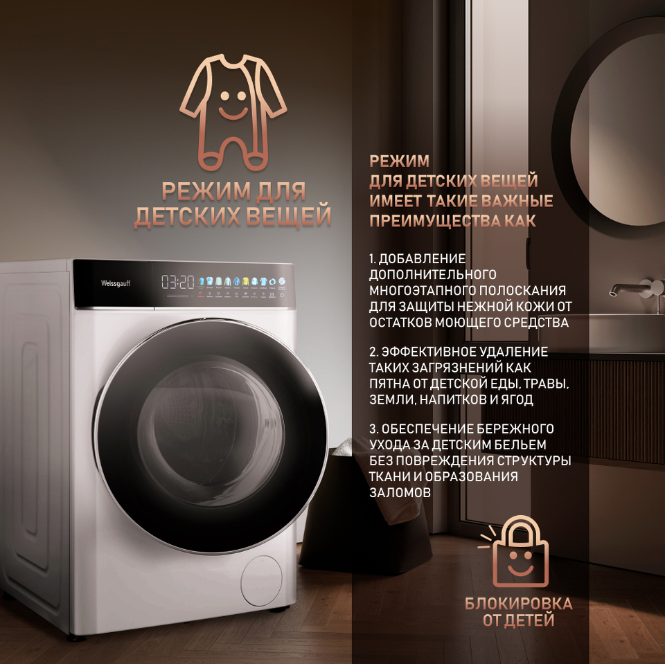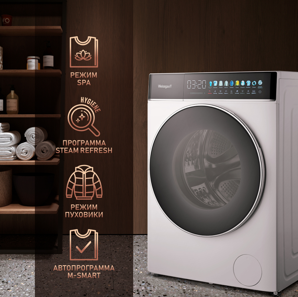 Функция "Пар" (SPA) - это инновационное решение от компании Weissgauff, которое позволит придать свежести вещам, а также устранить неприятный запах, легкие загрязнения и складки на одежде, бережно сохраняя при этом структуру волокон ткани. При выборе режимов, имеющих в своем цикле данную функцию, пар добавляется в ходе цикла в процессе работы программы!