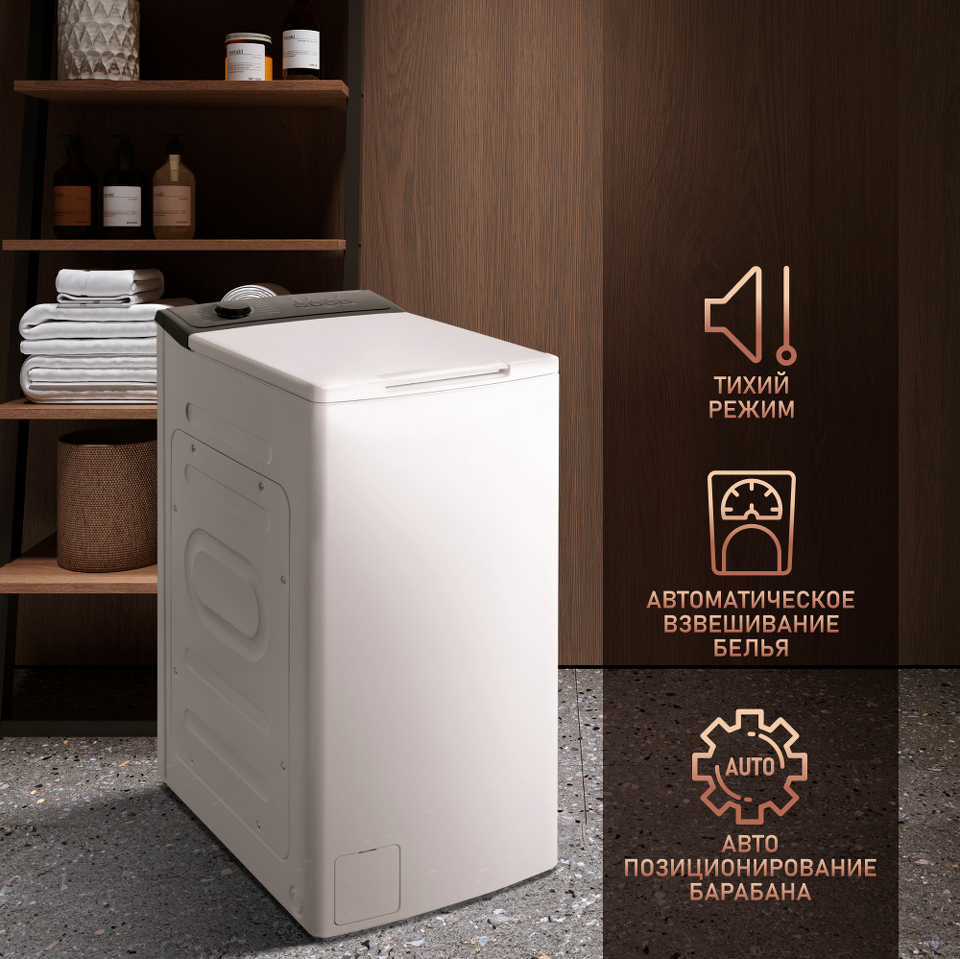 Вертикальная загрузка - открывает целый ряд эргономических преимуществ, связанных с возможностью установки данной модели даже в самой малогабаритной квартире!