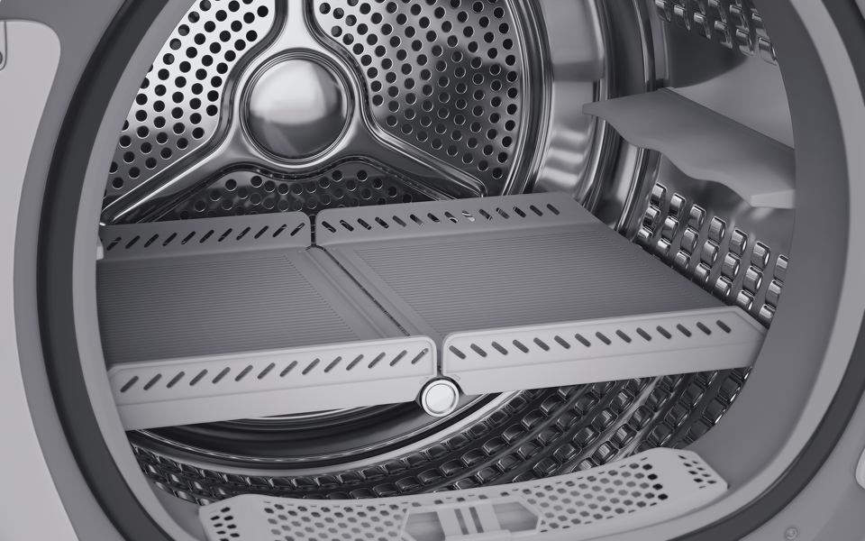 Объемные предметы и самые требовательные ткани можно зафиксировать на складной полке нового поколения. Ее размер увеличен до 34×51 см в глубину и ширину — это больше, чем у других моделей, и позволяет сушить даже объемные вещи в один слой.