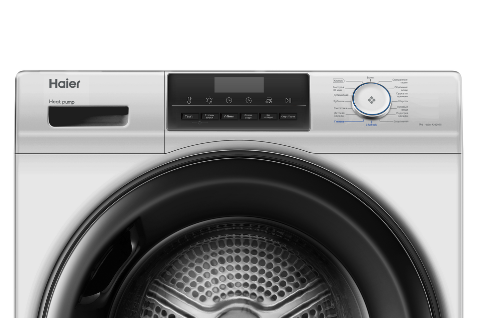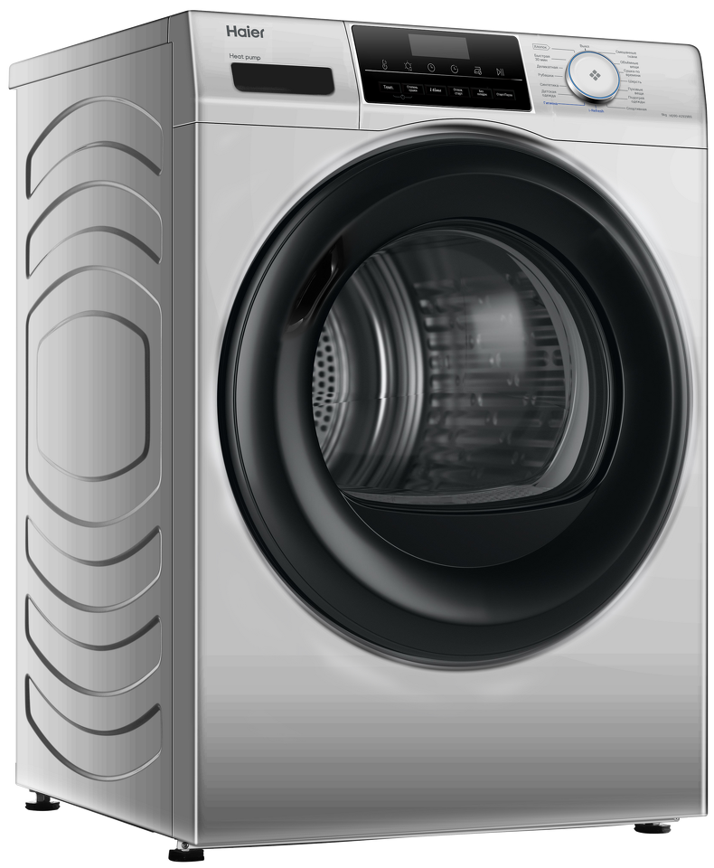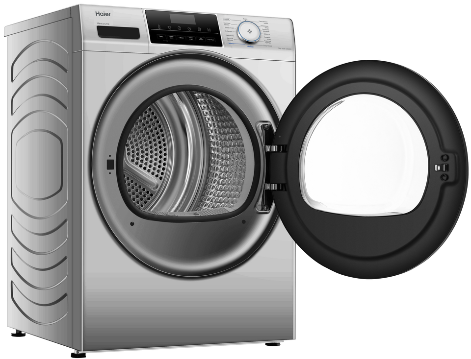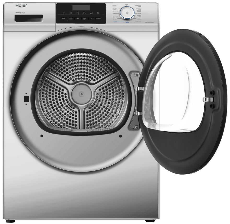 Серебристая сушильная машина Haier HD90-A2929BS — решение для тех, кто заботится об энергоэффективности и экологии. Модель оборудована тепловым насосом и работает на основе максимально технологичного фреона R134a. Широкая дверца диаметром 52,5 см облегчает загрузку вещей. Максимальная вместительность барабана — 9 кг.