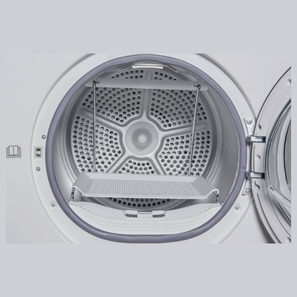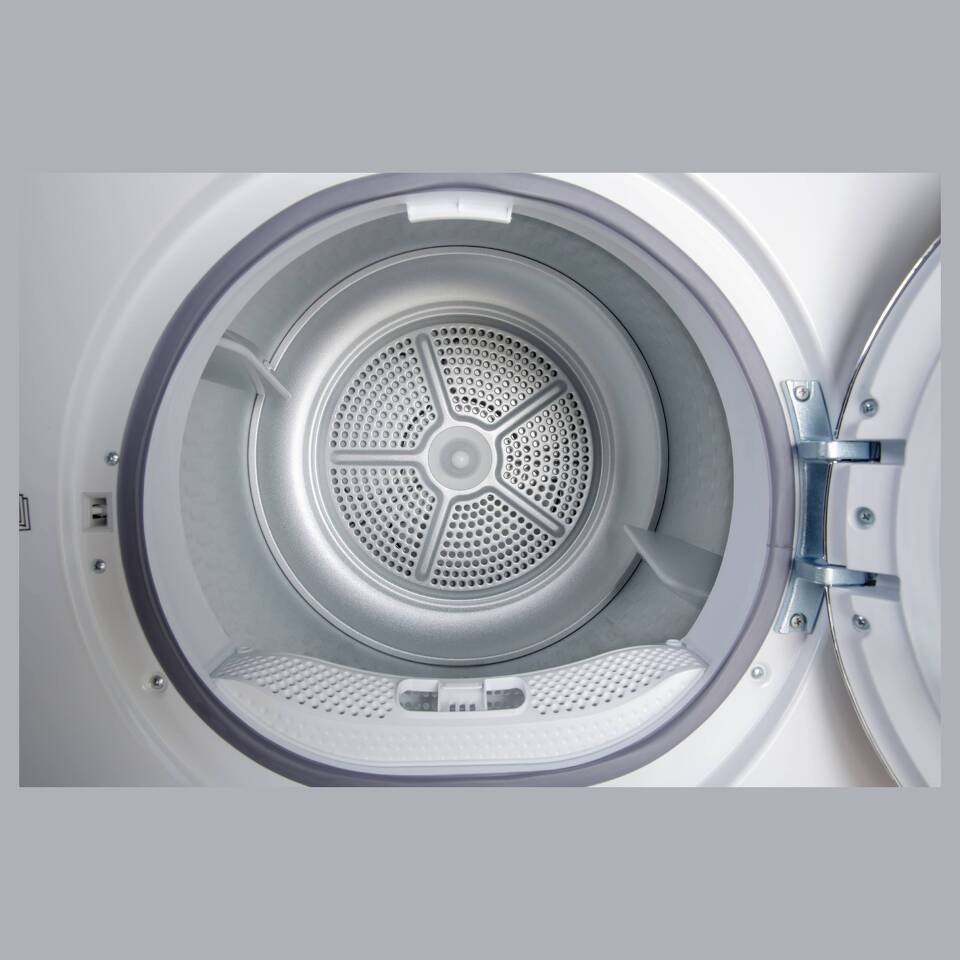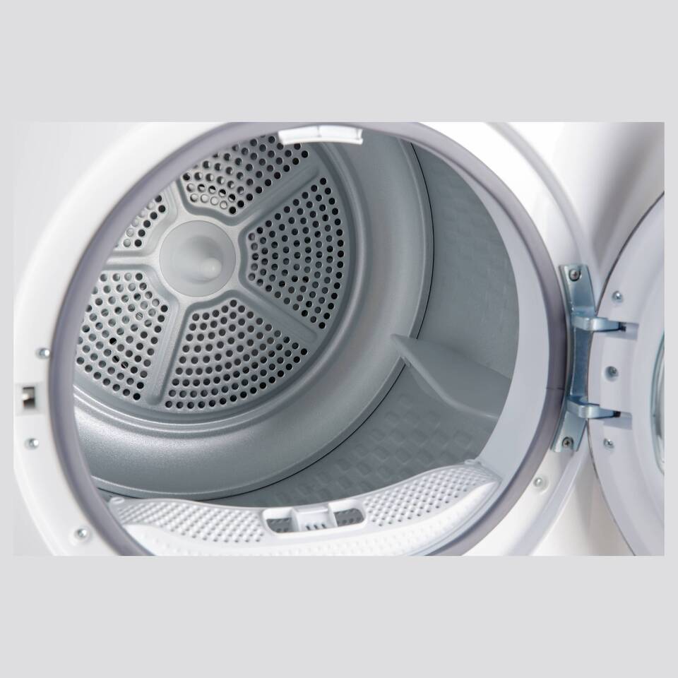Технология Heat Pump схожа с принципом холодильника, только наоборот: внутри прибора компактно размещаются два важных элемента – горячий и холодный контуры. Задача горячего контура - нагреть воздух, который далее, при помощи вентилятора, попадает в барабан и забирает влагу из мокрых тканей. Второй активный холодный контур эту влагу собирает и отправляет в съемный резервуар. Такая технология позволяет меньше нагревать воздух, что помогает сушить вещи деликатнее и существенно снижать потребление электроэнергии. Температура нагрева тканей не превышает 50°C – вещи не подвергаются лишней термической обработке. Потребление электроэнергии у такого прибора существенно ниже обычных конденсационных аналогов.