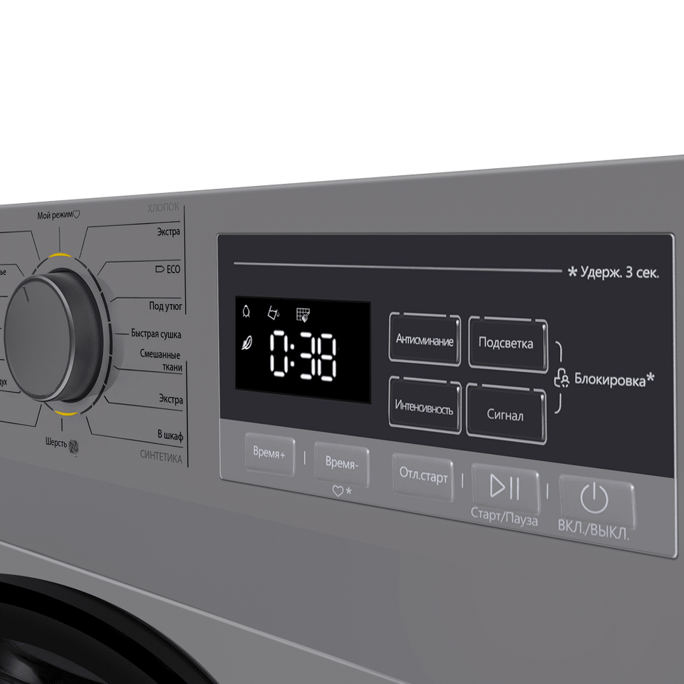 Блокировка от детей - это дополнительная безопасность и гарантия уверенности в том, что сушильная машина не будет случайно включена.
