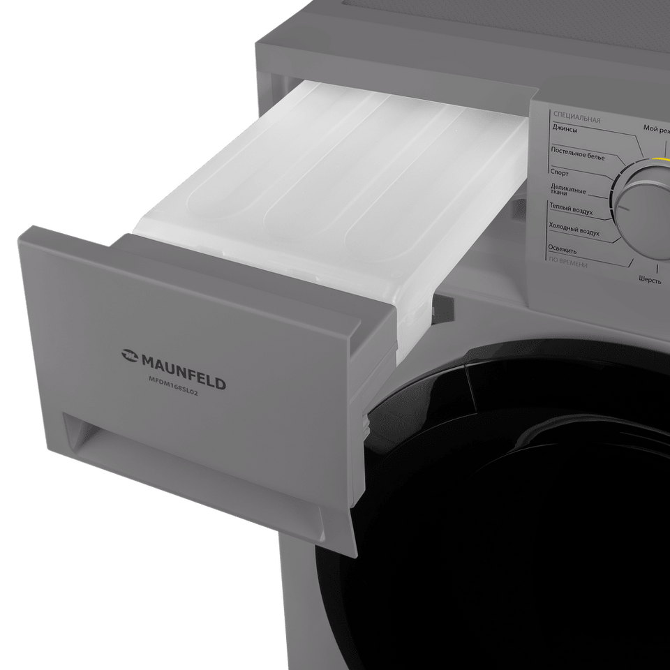 Съемный резервуар для слива конденсата - благодаря тому, что сушильная машина оснащена специальным резервуаром, в котором остается конденсат после сушки одежды, вы можете поставить и пользоваться устройством в любом помещении, даже если в нем нет оборудования для слива.