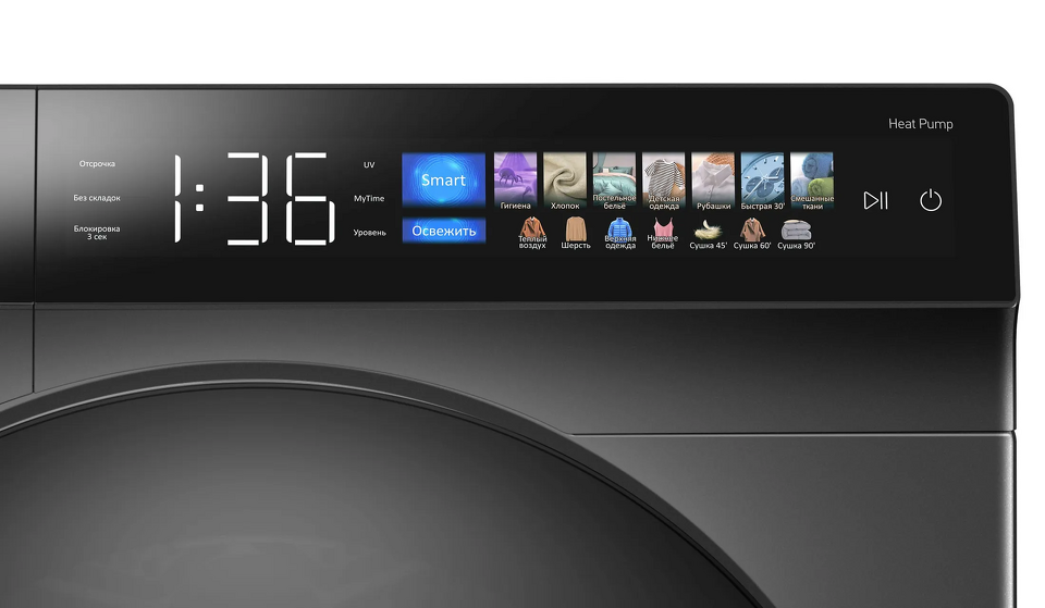 Ключевые характеристики:16 программ сушки: Выберите подходящий режим для смешанных тканей, верхней одежды, шерсти или детской одежды.Интеллектуальные технологии: Датчик влажности и регулировка времени сушки обеспечивают точный контроль процесса.Инновационные решения: Реверсивное вращение барабана предотвращает сминание, а ультрафиолетовая обработка обеспечивает гигиеническую чистоту.Удобство использования: Сенсорное управление с цветным LED-дисплеем, функция отложенного старта (1–24 часа) и подсветка барабана.Безопасность: Встроенная блокировка управления от детей и защита от перегрева двигателя.