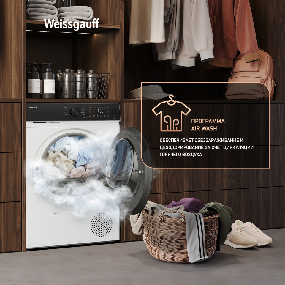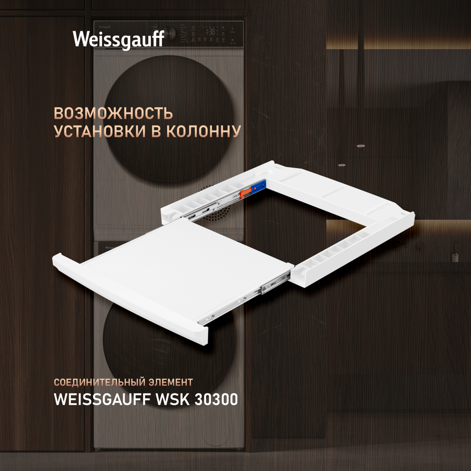 FAMILY- комплект! Данная модель идеальна для установки в колонну со стиральной машиной Weissgauff WM 59411 Direct Drive Inverter Steam, образуя цельный и гармоничный комплект бытовой техники, выполненный в едином дизайне! Обратите внимание, что для установки в колонну потребуется дополнительно приобрести Соединительный элемент Weissgauff WSK 30300