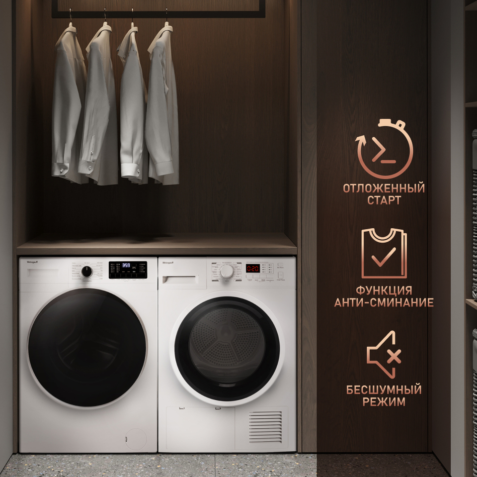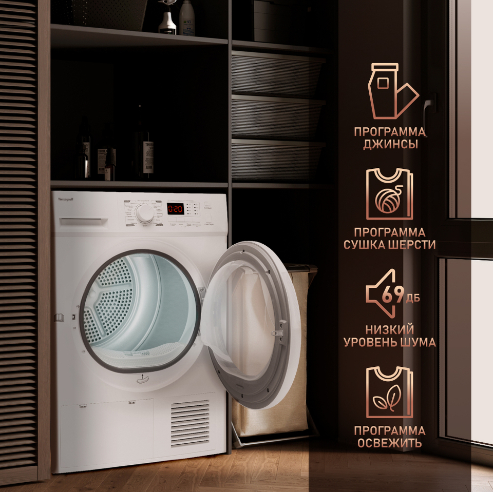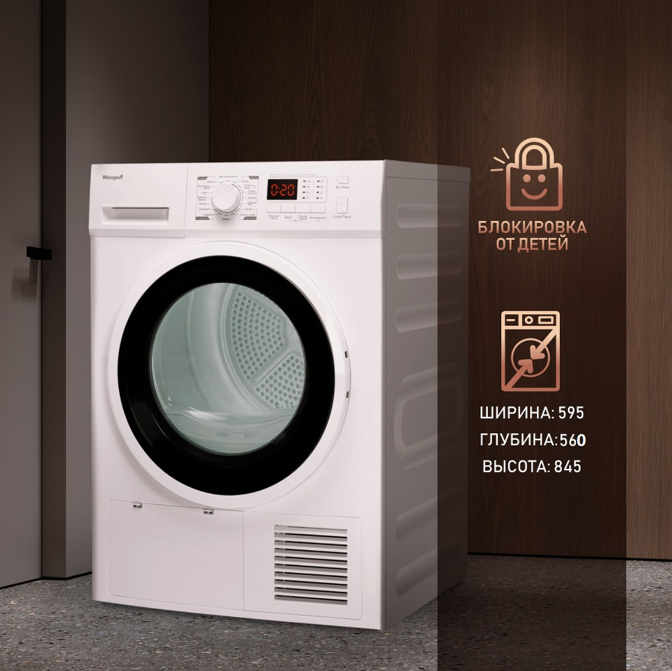 Отдельностоящая сушильная машина Weissgauff, оснащенная современным двигателем, имеет великолепный показатель загрузки до 8 килограммов белья, вместительный барабан объемом 105 литров и полностью электронное управление, что в сочетании с современной конденсационной системой сушки станет для вас гарантией непревзойденной эффективности и высокого результата при каждом запуске этой великолепной модели!