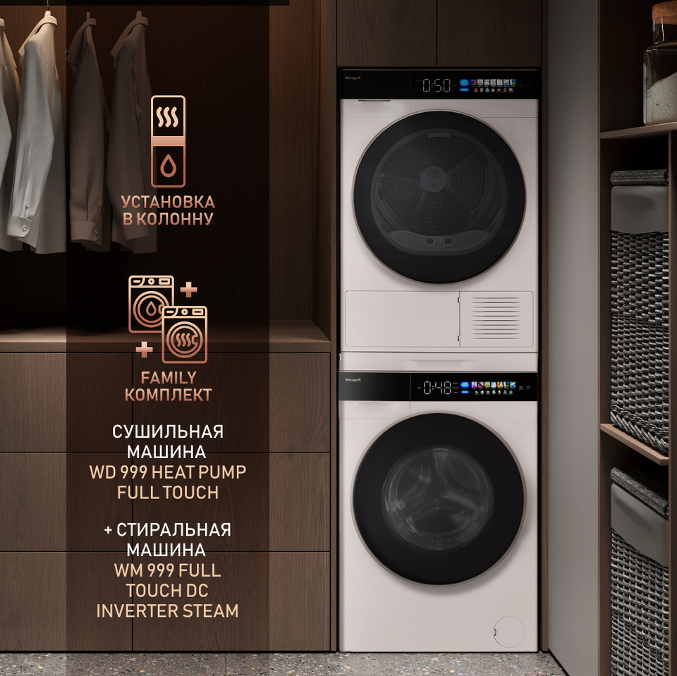 FAMILY- комплект! Данная модель идеальна для установки в колонну со стиральной машиной Weissgauff WM 999 Full Touch DC Inverter Steam, образуя цельный и гармоничный комплект бытовой техники, выполненный в едином дизайне! Обратите внимание, что для установки в колонну потребуется дополнительно приобрести соединительный элемент Weissgauff WSK 19300
