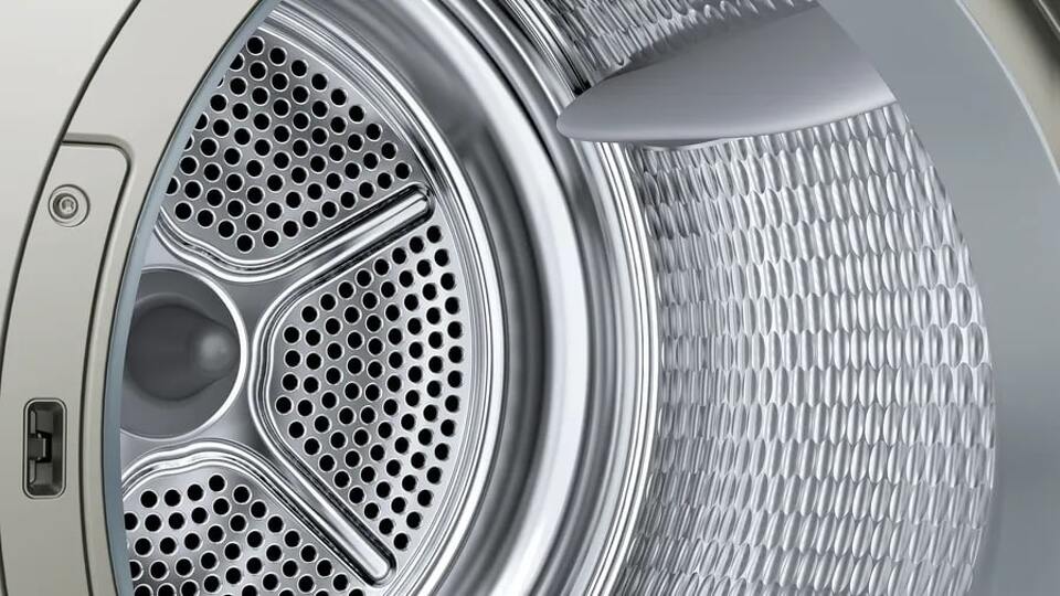 Особенностью машины является функция AutoDry, которая автоматически определяет необходимое время сушки. Также есть функция Allergy Plus/ Hygiene, что делает ее идеальной для людей с аллергией. Барабан машины выполнен из нержавеющей стали и имеет объем 112 литров. Внутри барабана установлена подсветка, что делает процесс загрузки и выгрузки белья более удобным. Машина оснащена стандартным двигателем и контейнером для конденсата. Защита от детей и дизайн боковой панели AntiVibration обеспечивают безопасность и стабильность работы. Машина относится к классу энергопотребления А+++, что говорит о ее высокой энергоэффективности.