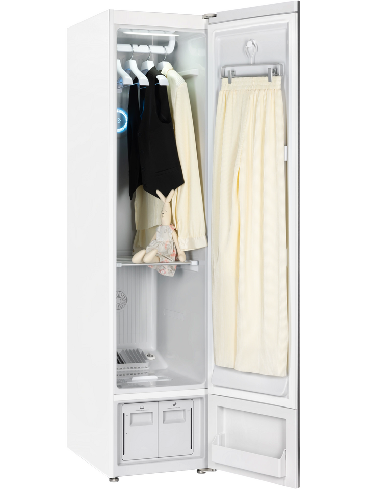 Модель имеет функцию отложенного старта. Вы можете воспользоваться ею вечером, чтобы к утру получить свежую одежду в идеальном состоянии. А для того чтобы шкаф не беспокоил вас звуковыми сигналами, вы можете перевести его в бесшумный режим.
