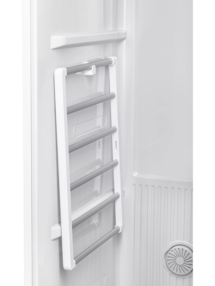 В модели используется конденсационный метод сушки с использованием керамического нагревательного элемента. Благодаря равномерной циркуляции потоков воздуха шкаф быстро высушивает одежду без усадки и повреждения деликатных тканей.