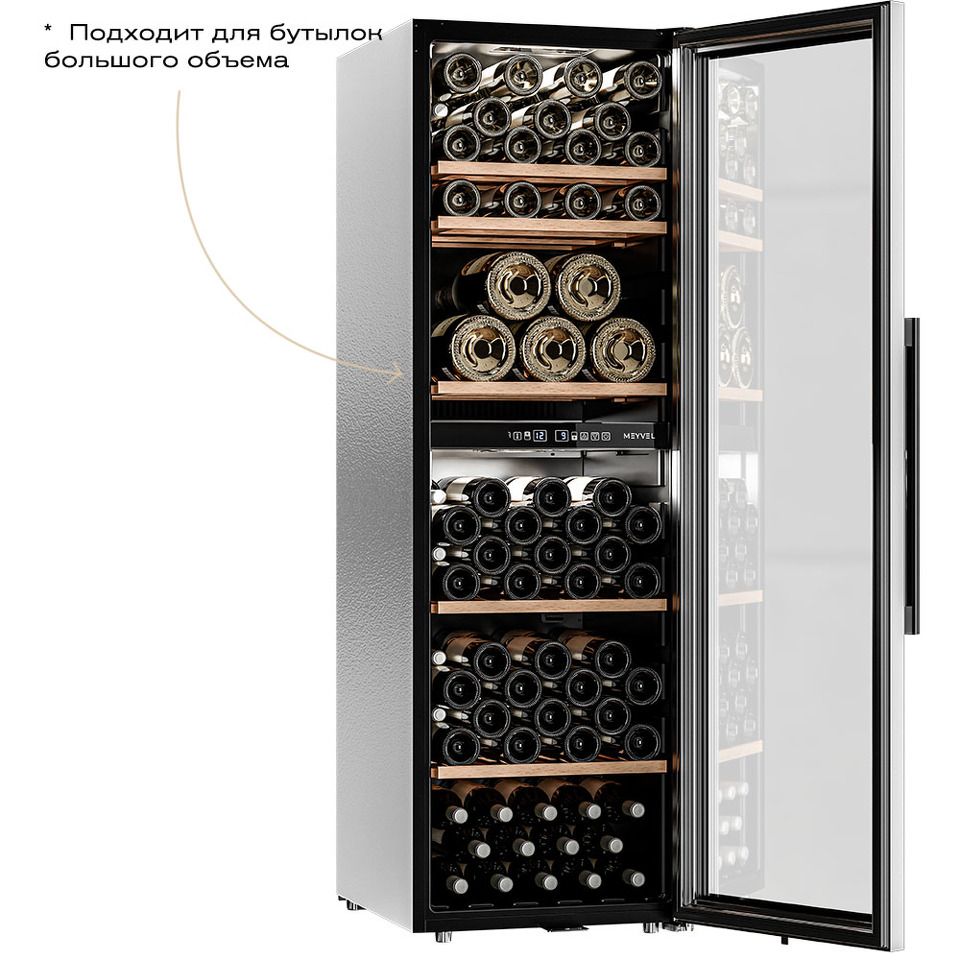 Винный шкаф Meyvel MV126-KBF2 — идеальное решение для истинных ценителей вина, который вмещает до 126 бутылок вашего любимого напитка и хранит их в оптимальных условиях.