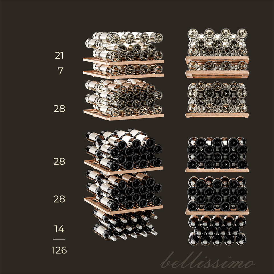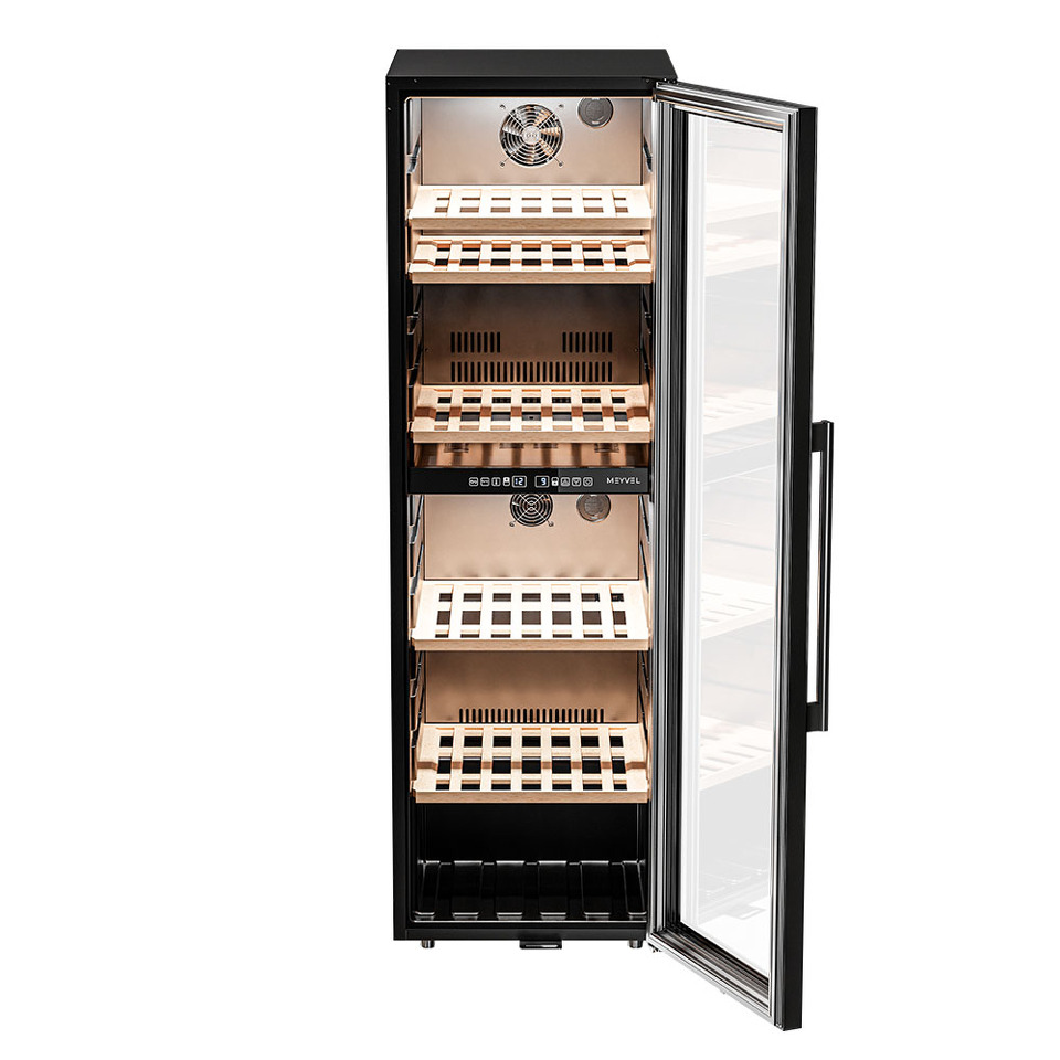 Meyvel MV126-KBF2 — отдельностоящее устройство, поэтому можно разместить его в любом удобном месте ресторана, отеля, бара или домашней винной комнаты без встраивания в мебель. Это удобно не только для создания стиля и атмосферы в интерьере, но и для предоставления легкого доступа к винам.