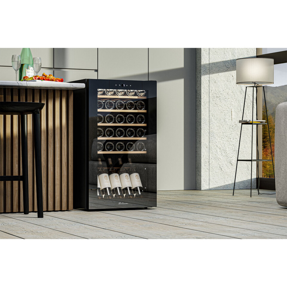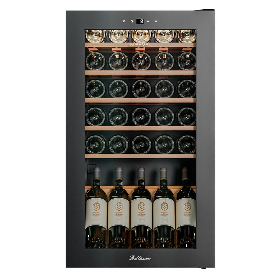 Винный шкаф Meyvel MV30-KBF1 – отличный выбор для ценителей вина, которые хотят организовать элегантную и практичную винотеку. Это сильное и вместе с тем функциональное устройство способно вместить до 30 бутылок типа «Бордо» 0,75 литра, обеспечивая их идеальное хранение.