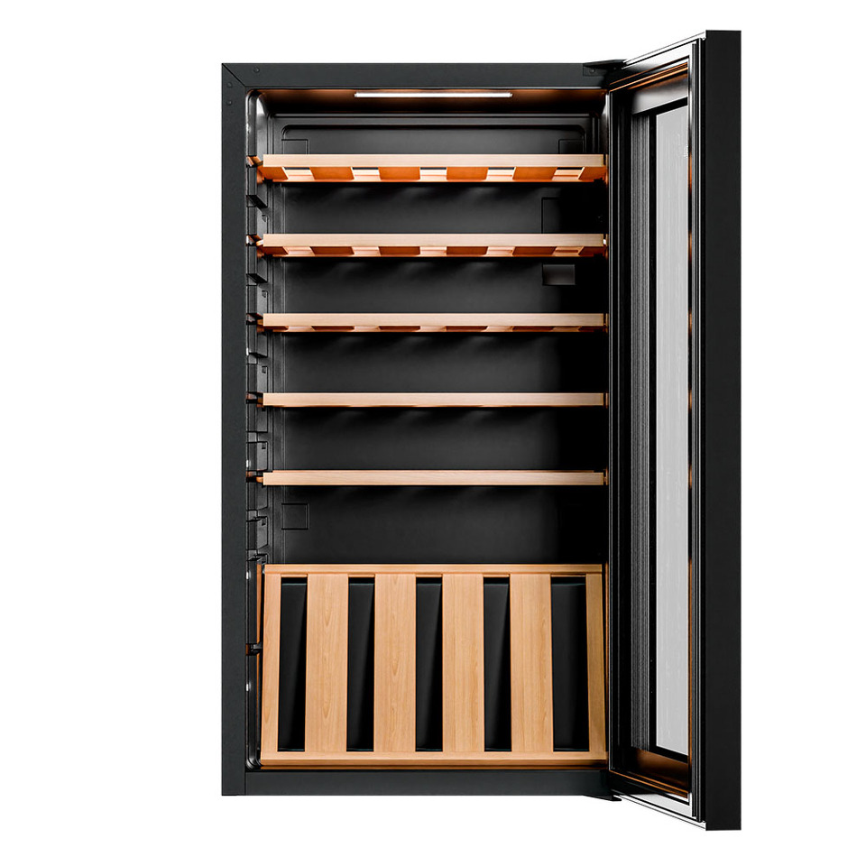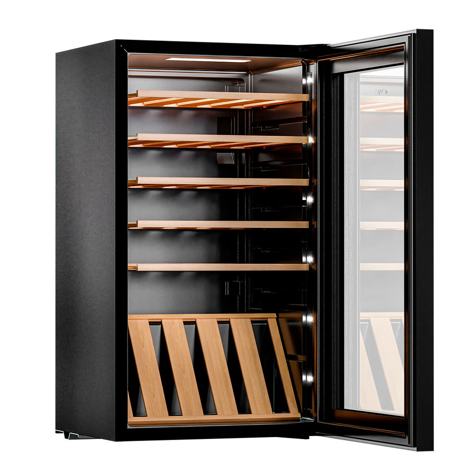 Сенсорное управление позволяет легко установить и поддерживать нужную температуру и влажность. LED-подсветка придает шкафу презентабельный вид и облегчает доступ к его содержимому.