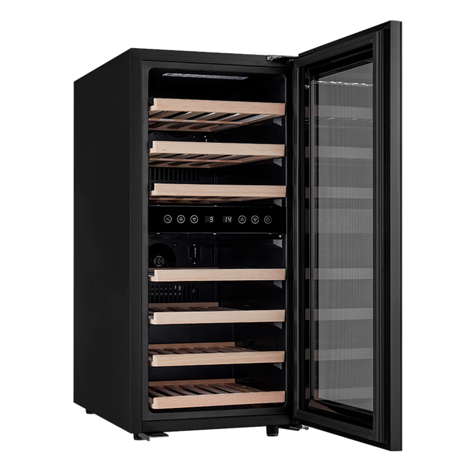 корпус MV33-KBF2 выполнен из стали окрашенной в чёрный цвет, стекло с шелкографией полностью покрывает дверь. Современная технология освещения позволит Вам в любое время эффектно продемонстрировать Вашу винную коллекцию гостям.