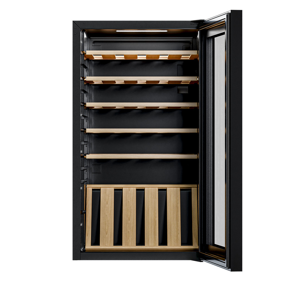 Сенсорное управление позволяет легко установить и поддерживать нужную температуру и влажность. LED-подсветка придает шкафу презентабельный вид и облегчает доступ к его содержимому.