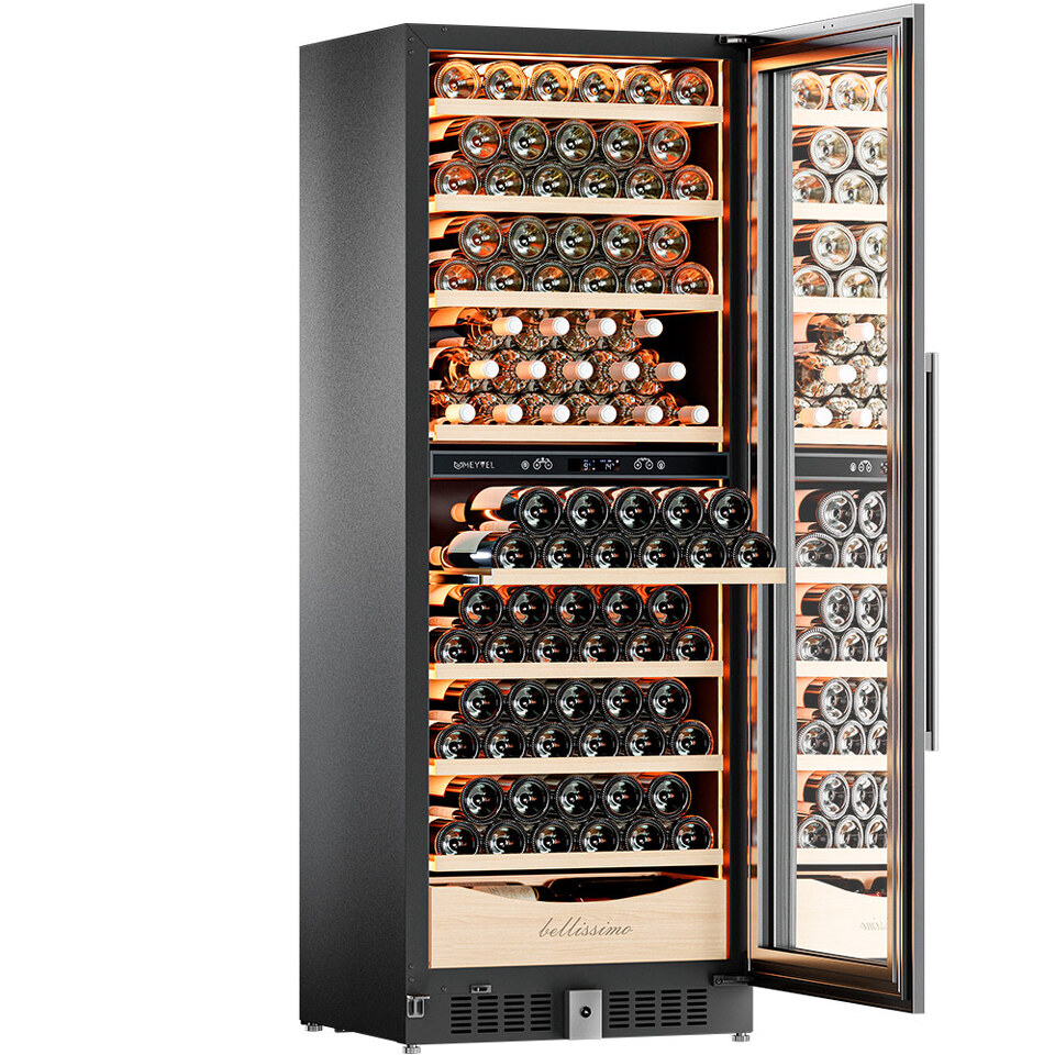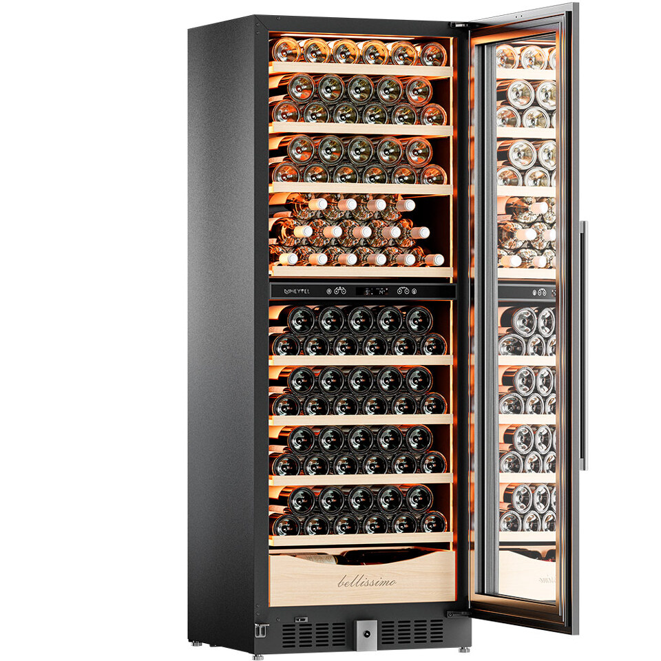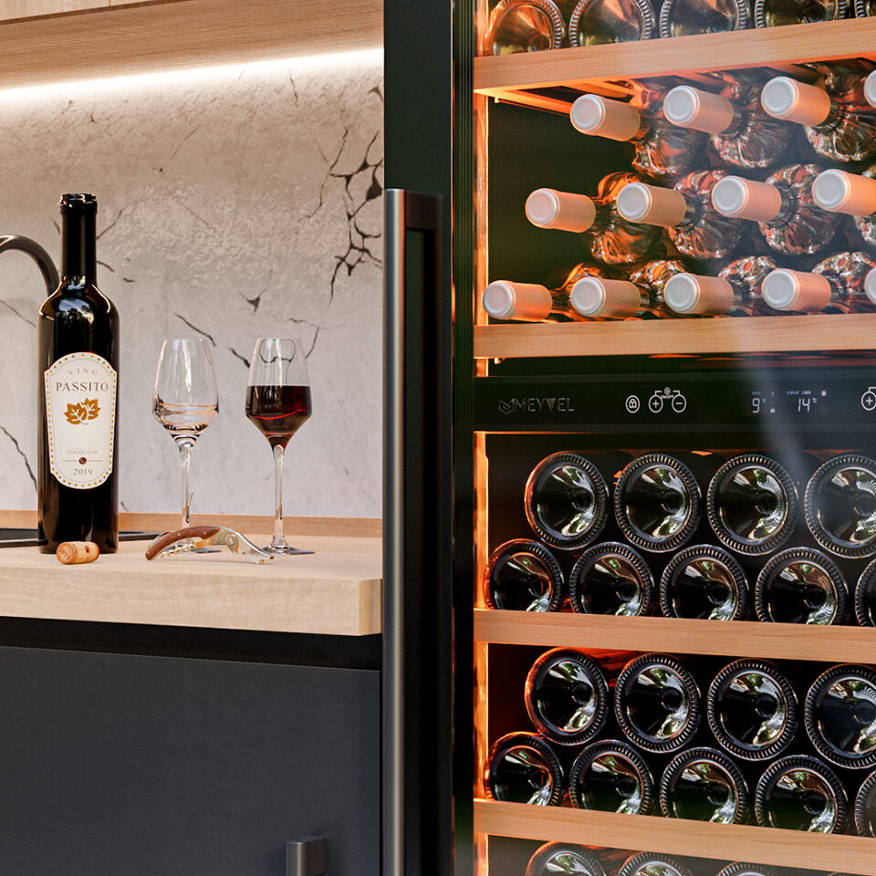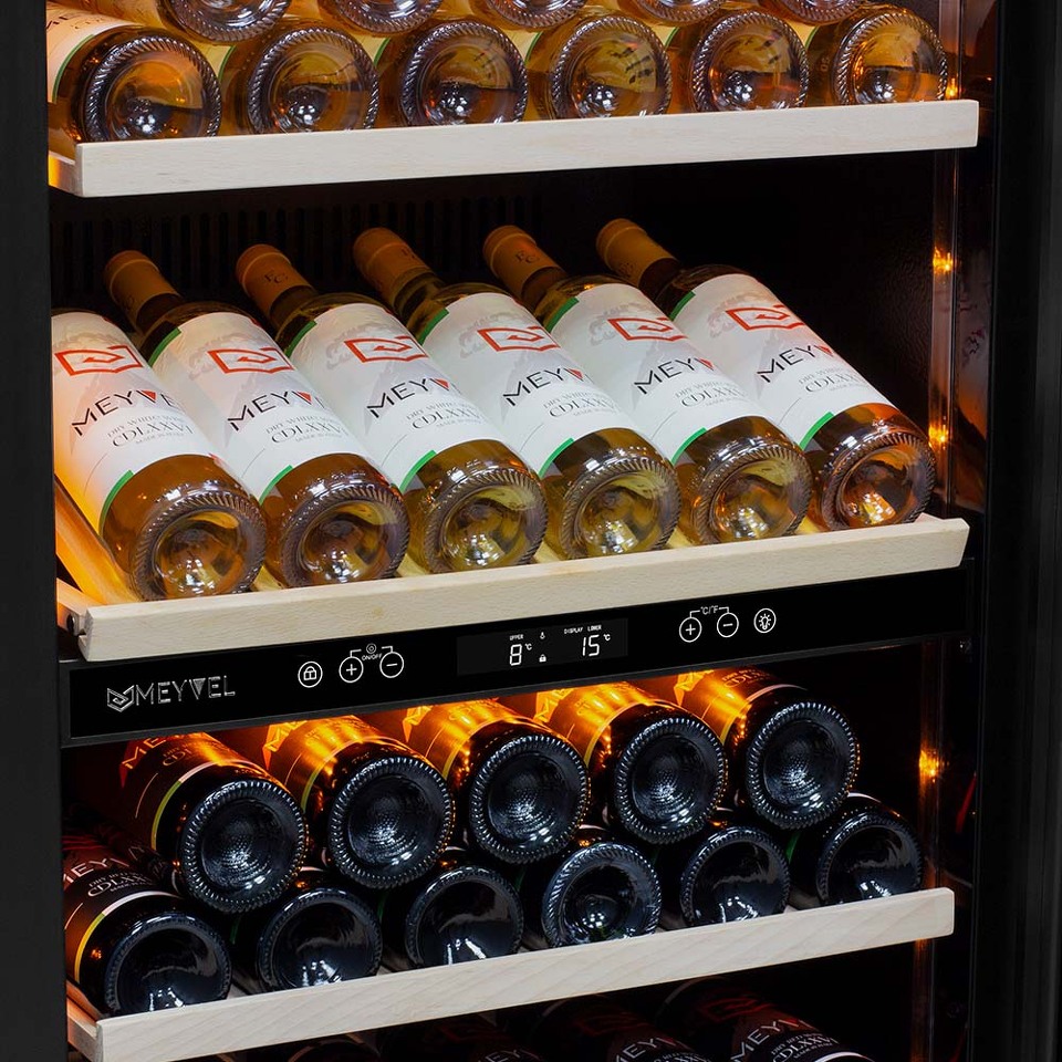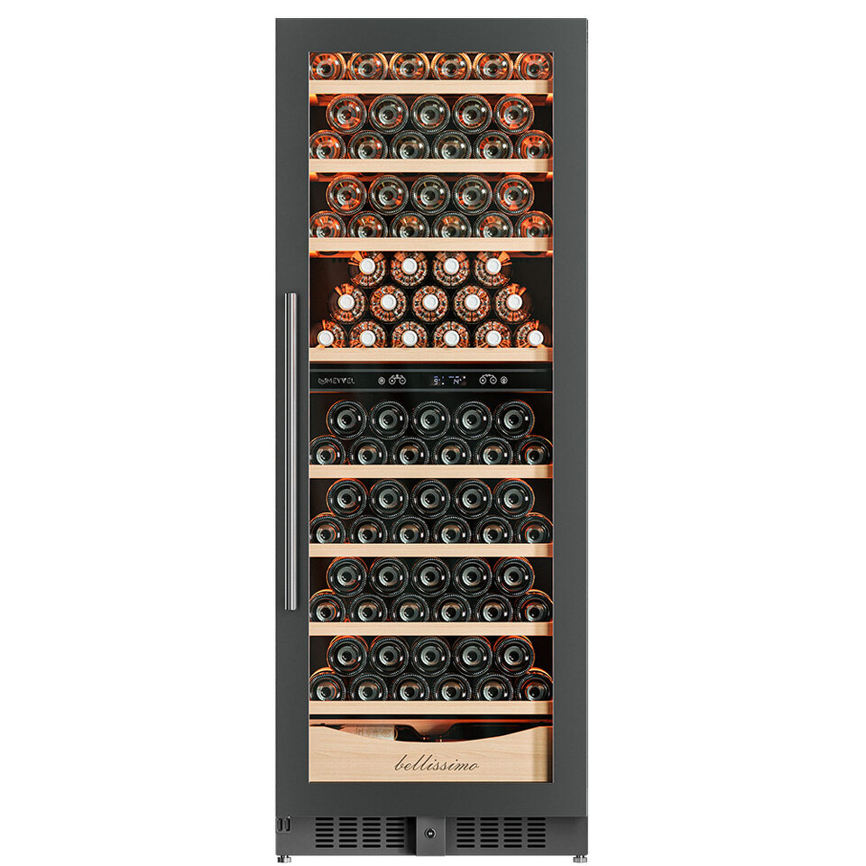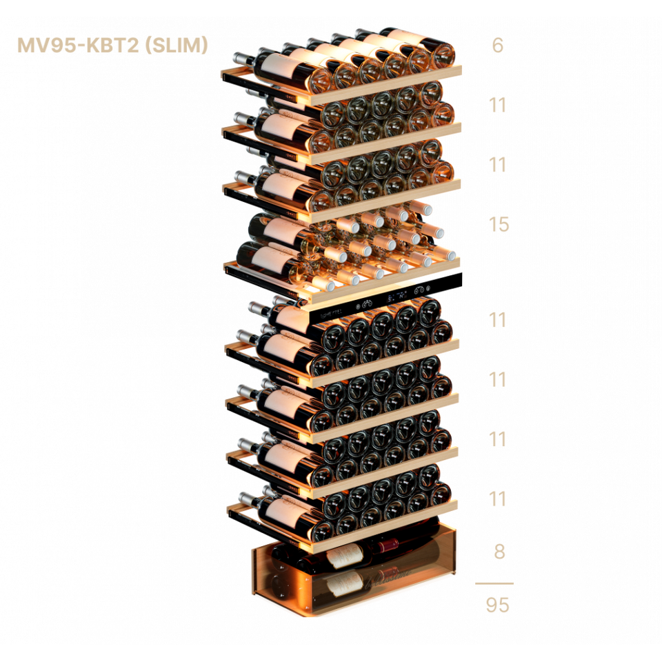 Продвинутый функционал и комплектация винного шкафа MV95-KBT2 (Slim) от итальянского бренда Meyvel создаёт одну из самых высококачественных систем для профессионального и длительного хранения различных сортов вин.