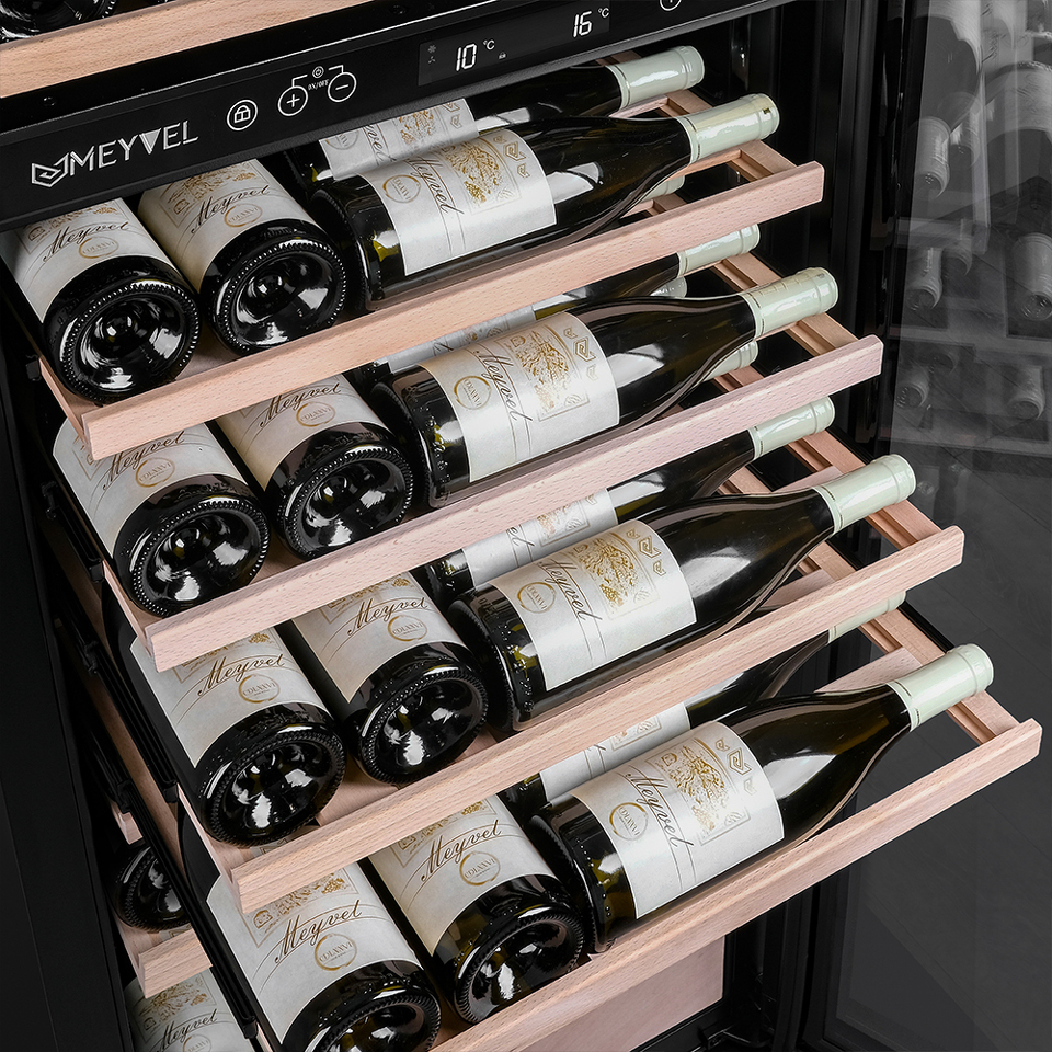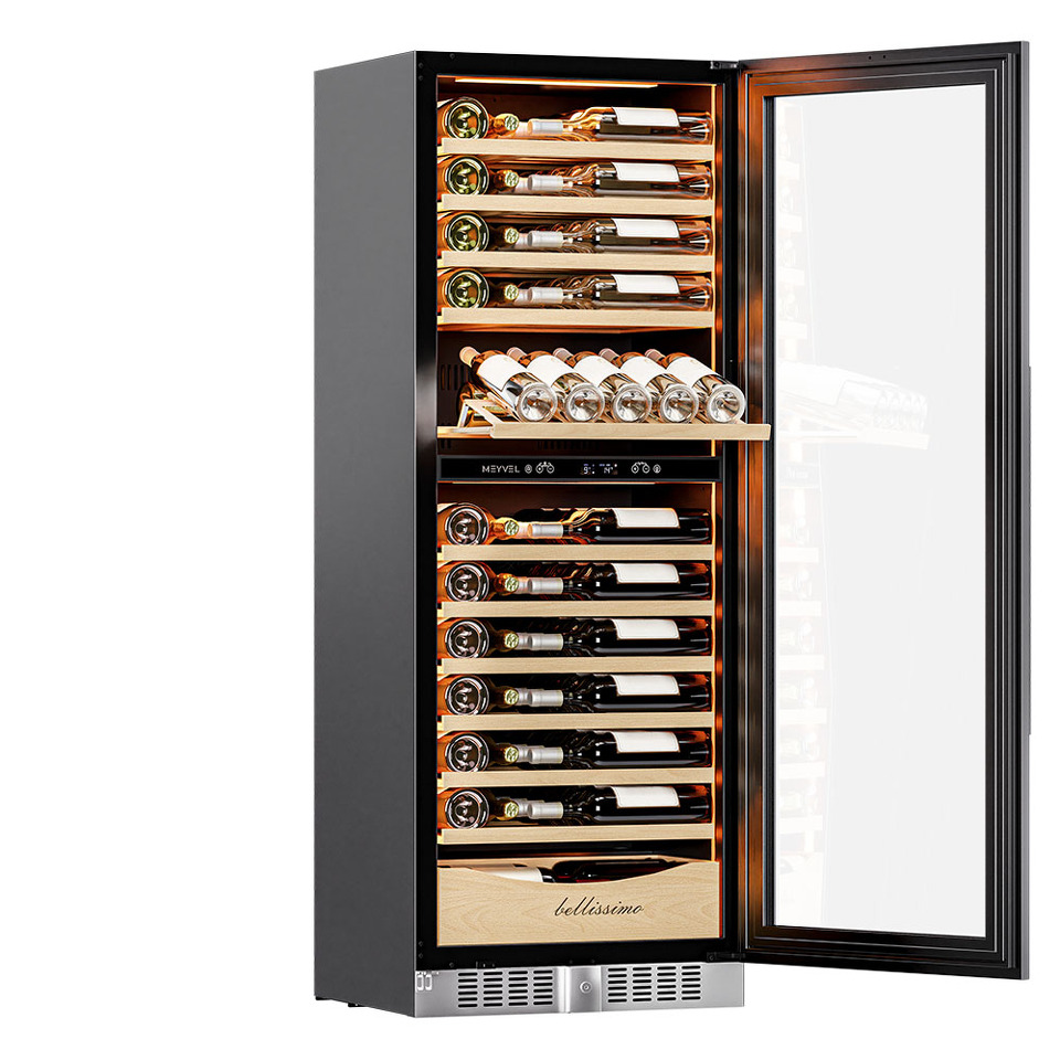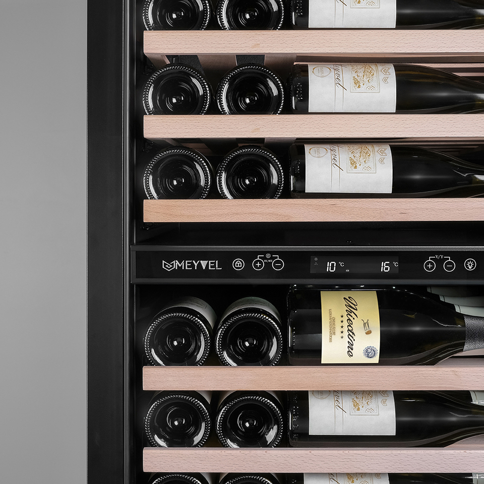 Продвинутый функционал и комплектация винного шкафа MV95-KST2 (Slim) от итальянского бренда Meyvel создаёт одну из самых высококачественных систем для профессионального и длительного хранения различных сортов вин.