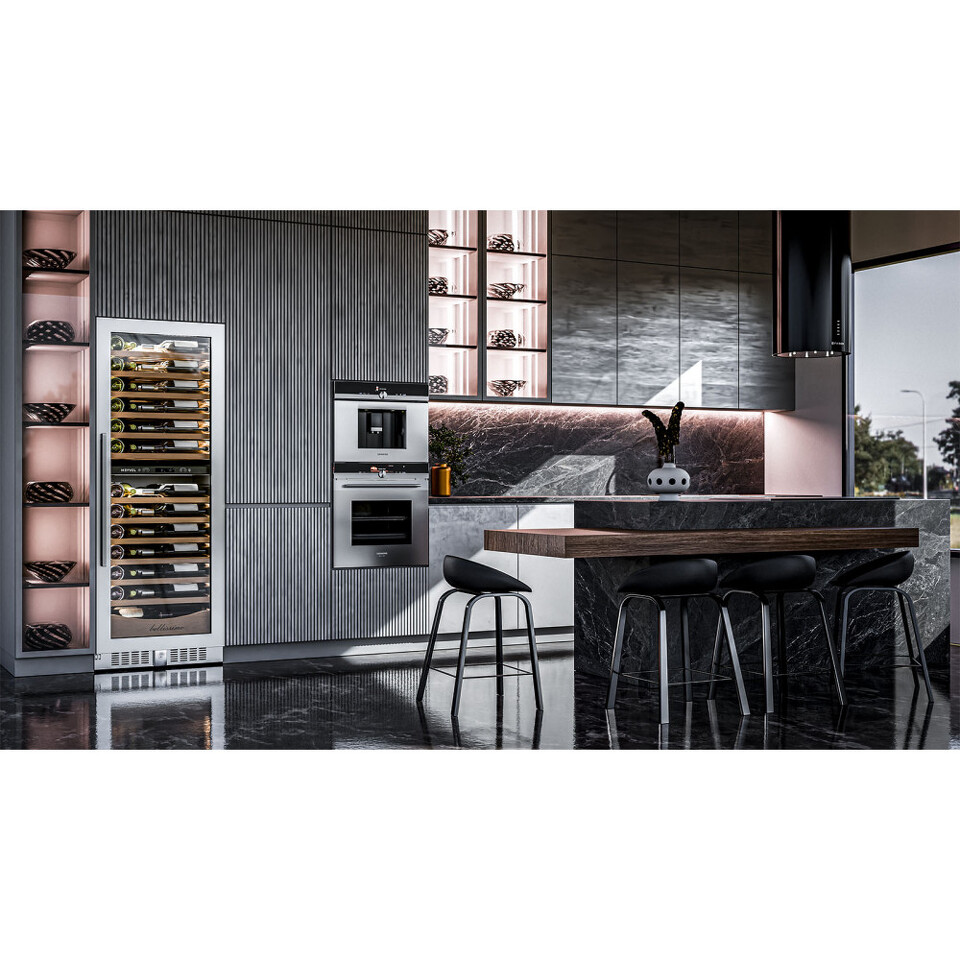 Благодаря возможности перенавешивания двери, Вы можете установить два винных шкафа рядом и организовать систему Side-by-Side.