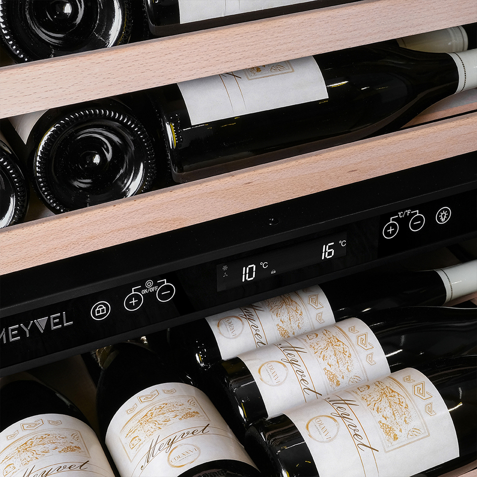 Внутренние пространство разделено на 2 зоны с возможностью раздельной настройки температуры. Так что Вы всегда сможете хранить все виды вин при идеальной температуре или установить разные значения, что бы напитки всегда были готовы к подаче.