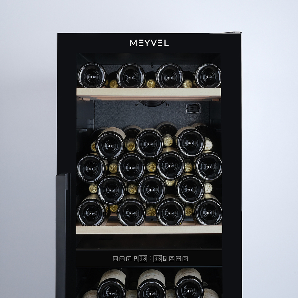 Винный шкаф Meyvel MV98-KBF2 — идеальное решение для истинных ценителей вина, который вмещает до 98 бутылок вашего любимого напитка и хранит их в оптимальных условиях.