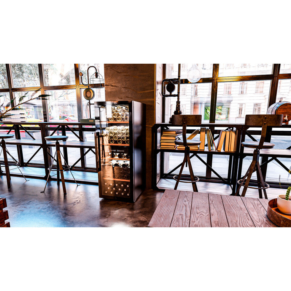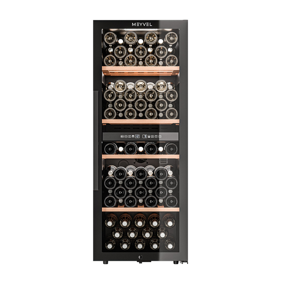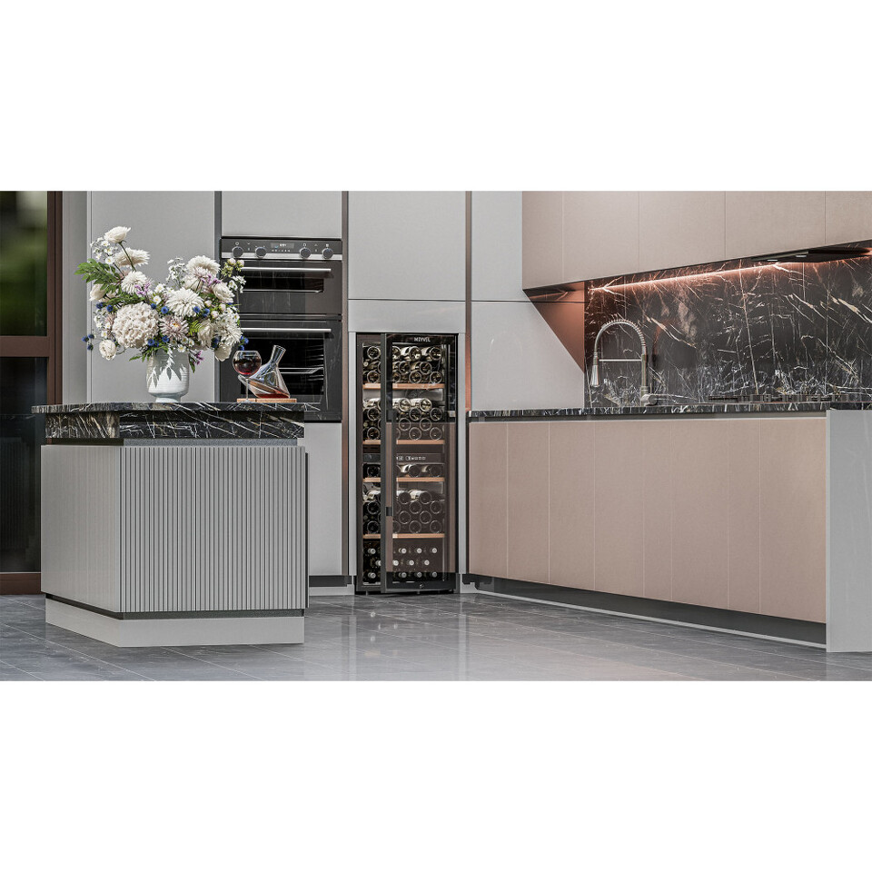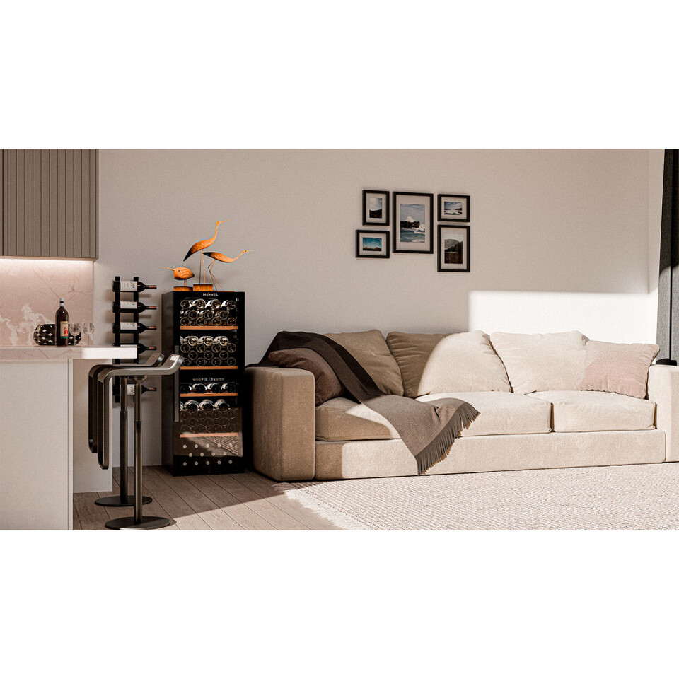 Meyvel MV98-KBF2 — отдельностоящее устройство, поэтому можно разместить его в любом удобном месте ресторана, отеля, бара или домашней винной комнаты без встраивания в мебель. Это удобно не только для создания стиля и атмосферы в интерьере, но и для предоставления легкого доступа к винам.