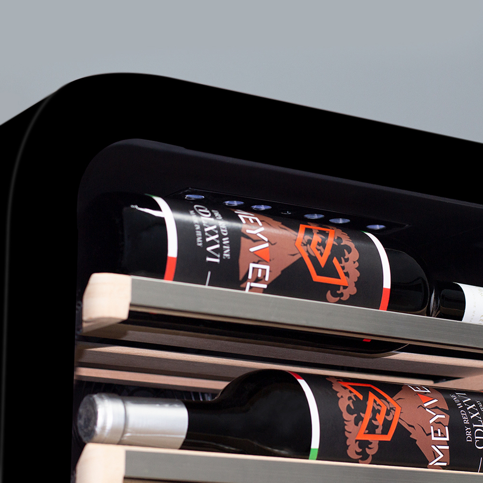 Модель MV34-KBF1 имеет привлекательный внешний вид, сочетающий в себе неподвластное времени очарование натуральных материалов с высокотехнологичными системами сохранения продуктов. Винный холодильник Meyvel MV34-KBF1 оснащен дверью с тройной защитой от ультрафиолетовых лучей и отлично подойдет для хранения и созревания различных сортов вин. Динамическая система охлаждения обеспечивает оптимальную температуру для вина и сохраняет необходимую влажность внутри камеры.