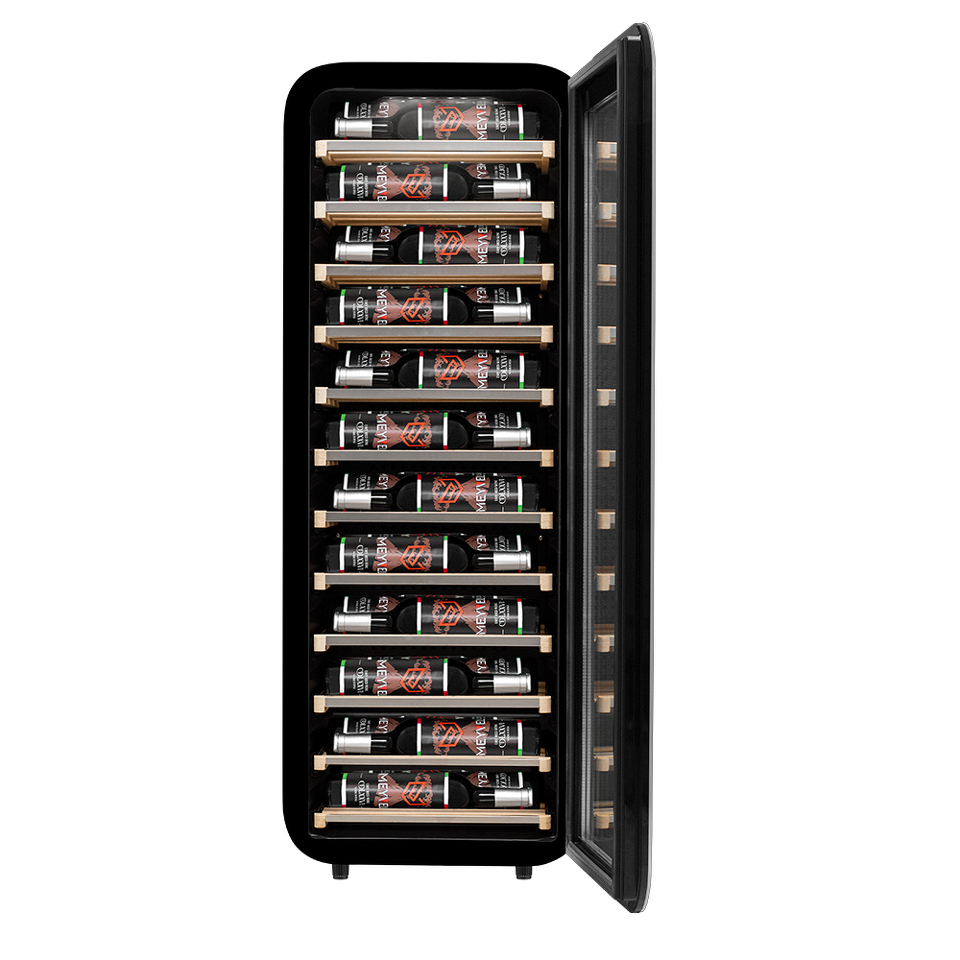 Компрессорный винный шкаф Meyvel MV34-KBF1 обладает большой вместимостью и способен разместить до 34 бутылок. Располагаются они на полках из массива бука. Внутреннее пространство шкафа имеет одну температурную зону с диапазоном от +5°C до +18°C. Холодильник поддерживает влажность в диапазоне 60-80%, как в настоящем винном погребе.