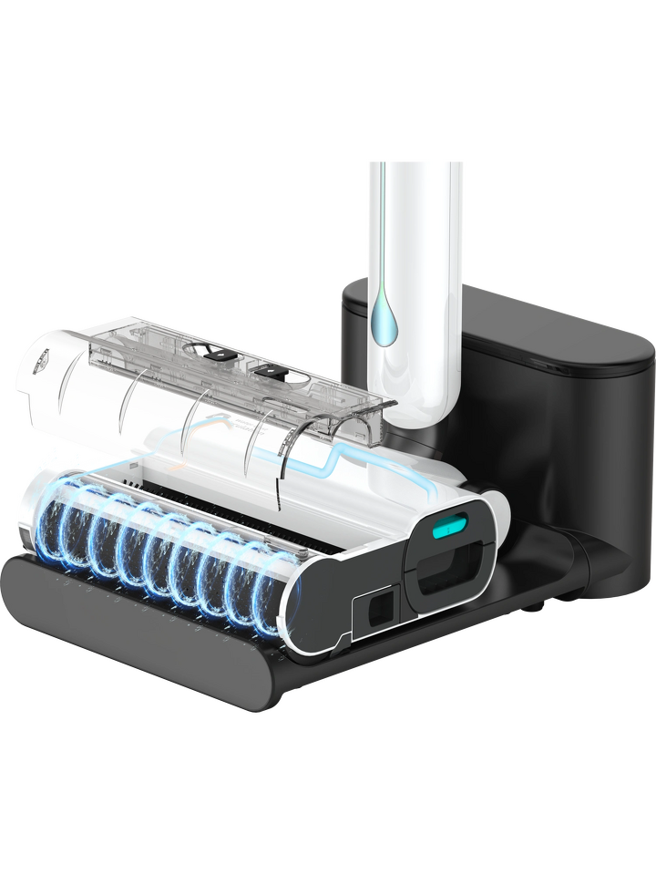Эргономика и комфорт использованияКомпактный корпус весом всего 2,8 кг легко скользит по полу, обеспечивая маневренность даже в узких пространствах. Удобная форма и оптимальная высота корпуса позволяют без усилий убирать в узких пространствах и труднодоступных местах, а ручка с возможностью наклона до 180° расширяет диапазон движения, обеспечивая ещё больше свободы и возможностей для тщательной уборки. Вместительные резервуары — 450 мл для чистой воды и 500 мл для грязной — позволяют убирать без перерывов, а встроенный пылесборник на 150 мл собирает сухой мусор максимально эффективно. Управление с LED-дисплея делает работу с пылесосом интуитивной и по-настоящему удобной.