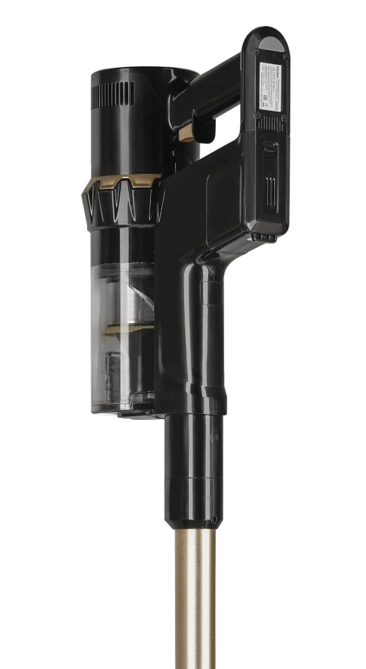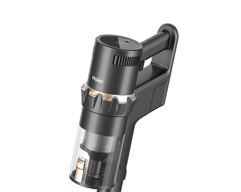 В ручном режиме на Haier HVC550 можно использовать для очистки мебели или удаления мусора из щелей. В вертикальном у вас будет классический пылесос с длинной алюминиевой трубкой, щеткой с электроприводом и инновационной системой извлечения валиков. Управление пылесосом механическое, для контроля за уровнем заряда и настройками мощности предусмотрен интеллектуальный дисплей. Также можно включить подсветку зоны уборки. Хранить модель удобно на напольном кронштейне, а насадки — в специальном мешочке.