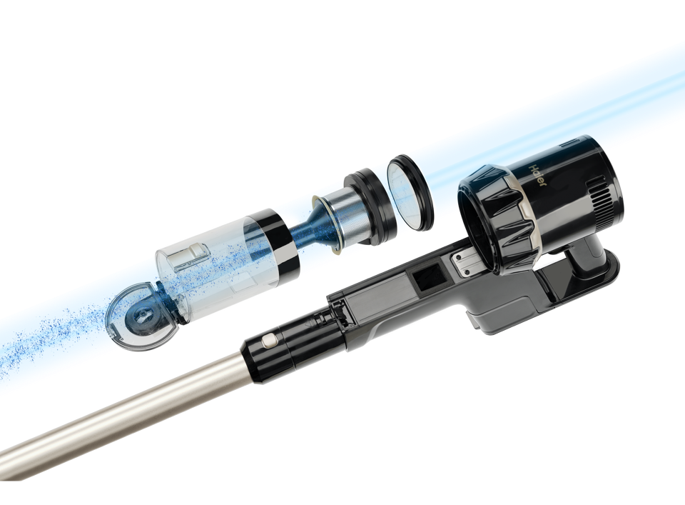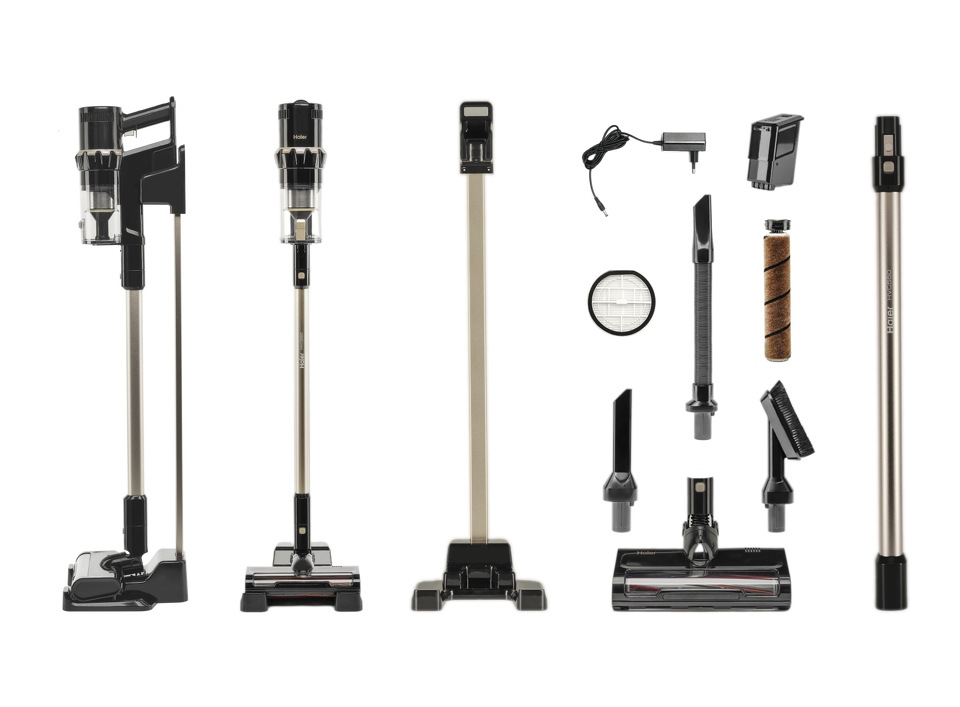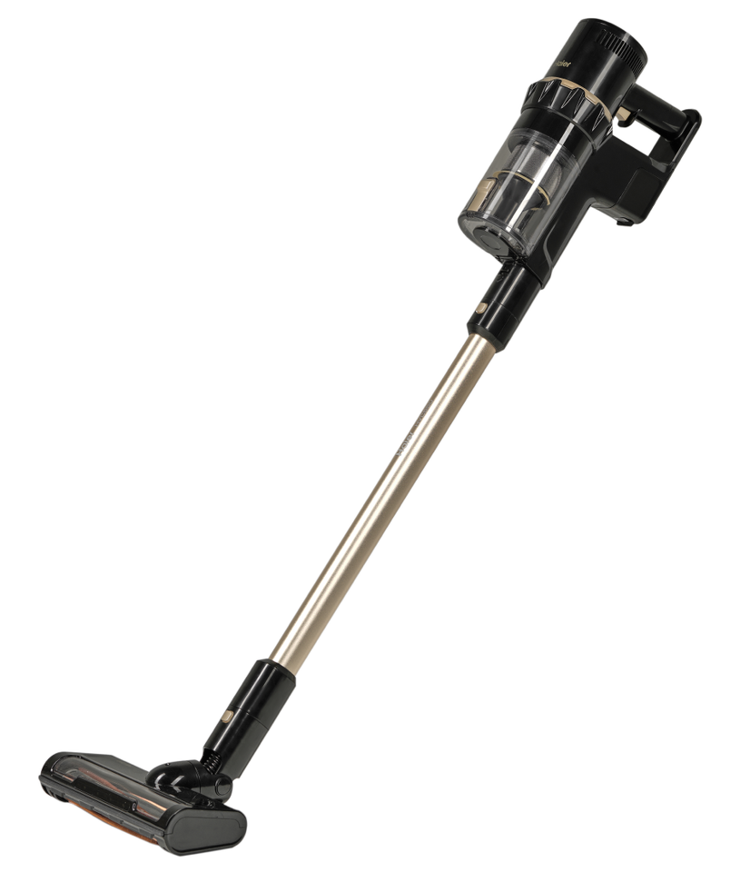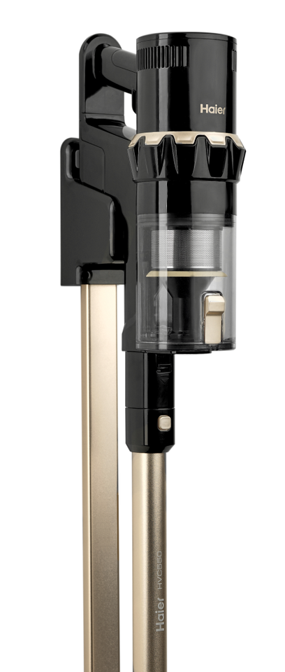 Haier HVC550 — одна из самых мощных моделей пылесосов в каталоге с мотором на 550 Вт и силой всасывания до 26000 Па. Контейнер для пыли вмещает до 500 мл, съемного аккумулятора емкостью 2500 мА•ч хватает на 60 минут автономной работы. Haier HVC550 имеет циклонную систему всасывания с пятиступенчатой фильтрацией и комплект из четырех съемных насадок и двух валиков, которые позволяют быстро трансформировать его из вертикального пылесоса в ручной и наоборот.