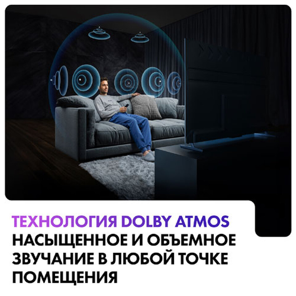 Наслаждайтесь трехмерным звуком благодаря технологии Dolby Atmos, которая добавляет каналы высоты и создает эффект, подобный звучанию в кинотеатре.
