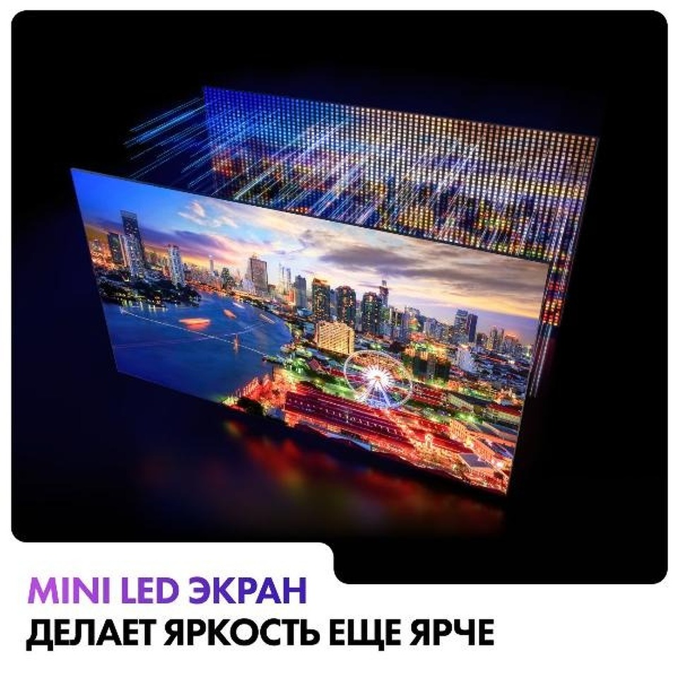Телевизор Haier 65 Mini LED Pro DH1VWMA06RU обладает 65-дюймовым экраном разрешением 4K Ultra HD (3840x2160 пикселей) и демонстрирует детализированное изображение, которое порадует и киноманов, и геймеров.