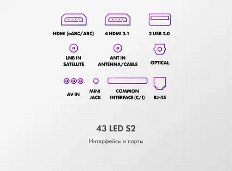 Диагональ экрана, дюйм 43