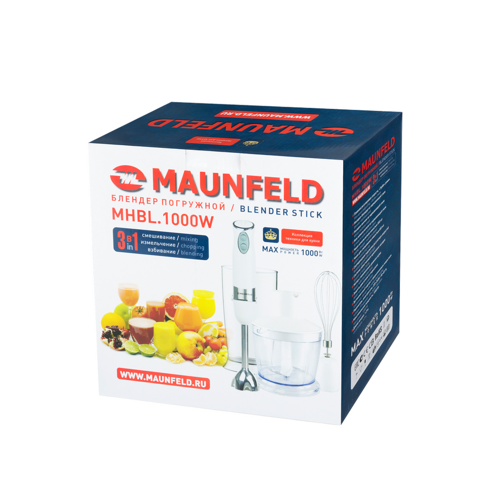 Этот погружной мультиблендер, мощностью 1000 Вт поставляется в комплекте с целым арсеналом кухонных аксессуаров. Погружная насадка блендера выполнена из нержавеющей стали, корпус изготовлен из высокотехнологичной ослепительно белой пластмассы.