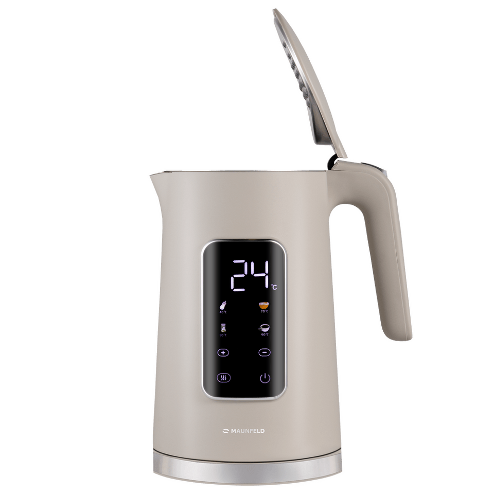 Коллекция электрических чайников с большим и ярким светодиодным дисплеем, на котором отображаются текущая температура и четыре уже встроенных режима нагрева, а также доступна настройка температуры нагрева вручную.