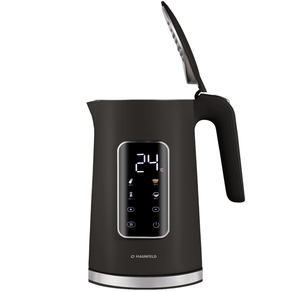 Коллекция электрических чайников с большим и ярким светодиодным дисплеем, на котором отображаются текущая температура и четыре уже встроенных режима нагрева, а также доступна настройка температуры нагрева вручную.
