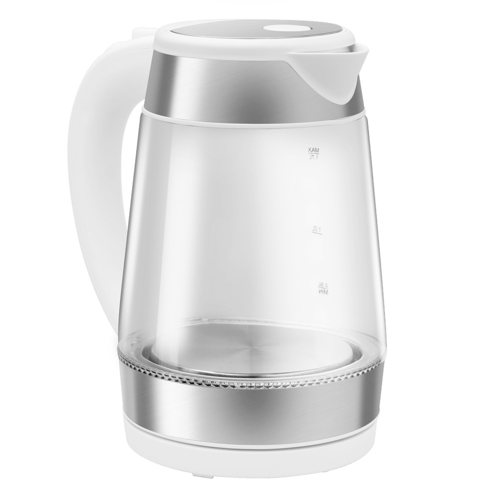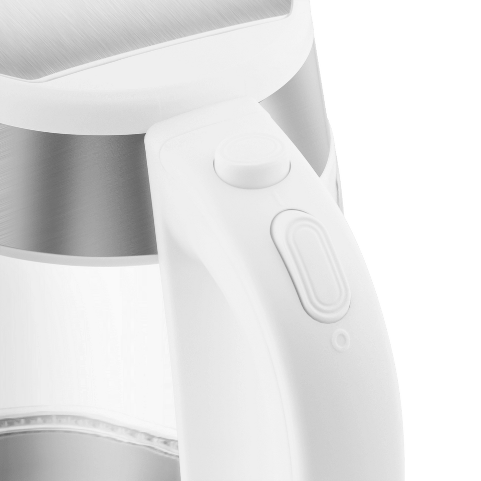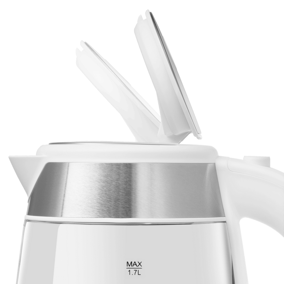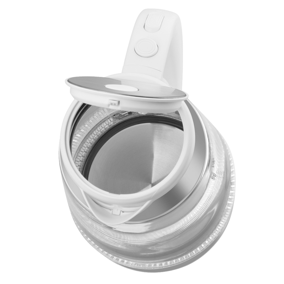 Элегантный чайник мощностью 2 200 Вт и объемом 1,7 л представляет собой идеальную комбинацию металлического основания и колбы из жаропрочного боросиликатного стекла, которая легко моется.