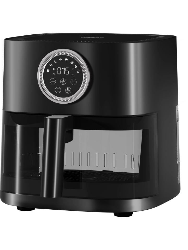 Управление прибором осуществляется с помощью сенсорной панели. На ней отображаются программы приготовления, время приготовления, температура и информация о процессе приготовления. Температурный режим обработки продуктов регулируется в диапазоне от 60 °С до 200 °С.