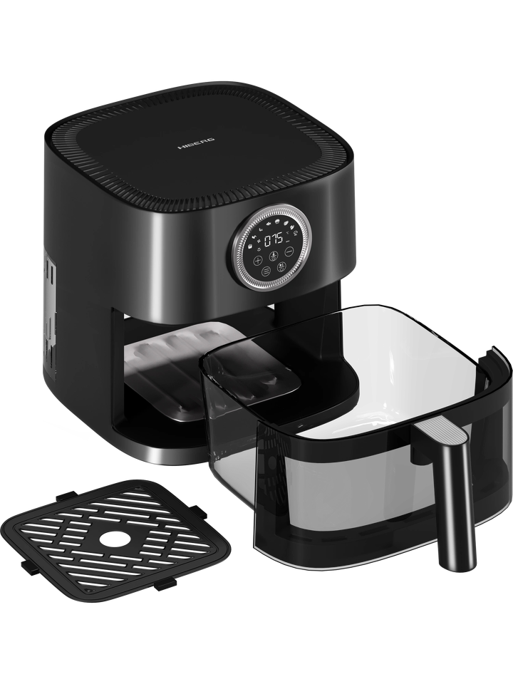 Противоскользящие ножки обеспечивают устойчивое положение прибора на рабочей поверхности. Кроме того, аэрогриль HIBERG безопасен в использовании благодаря автоматическому выключению при перегреве и термоизолированному корпусу. Ручка съемной чаши практически не нагревается во время работы, что исключает риск получения ожогов.