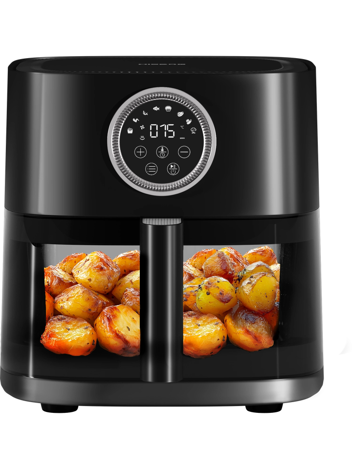Таймер с автоматическим отключением аэрогриля по завершении программы позволит вам не следить за временем и параллельно заниматься другими делами. В середине программы приготовления сигнал таймера уведомит вас о том, что блюдо пора перемешать или перевернуть.
