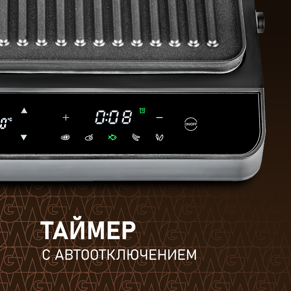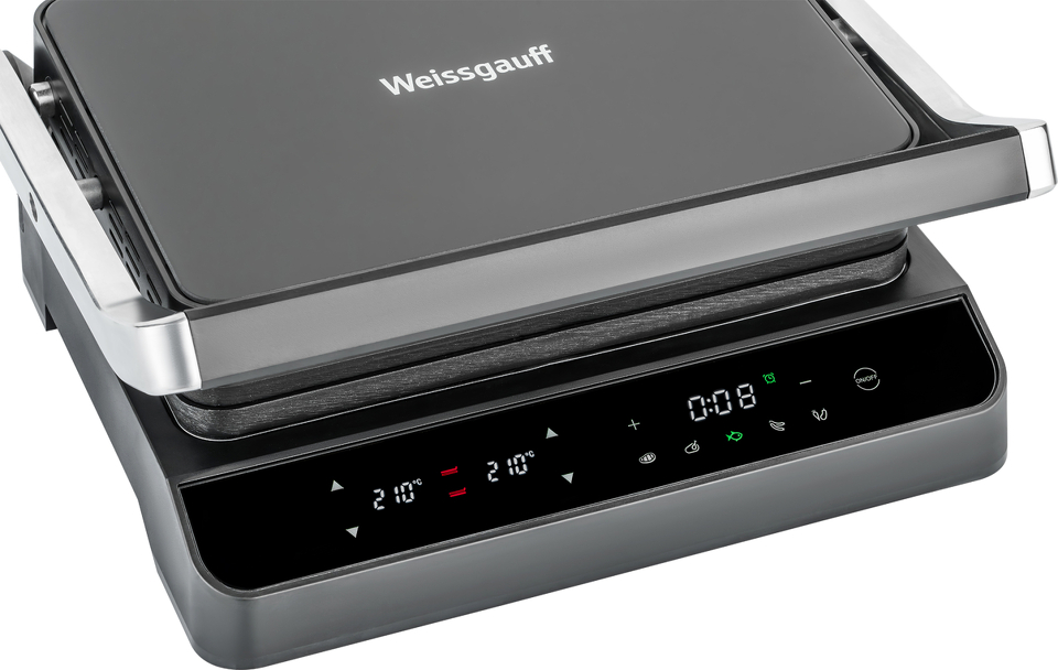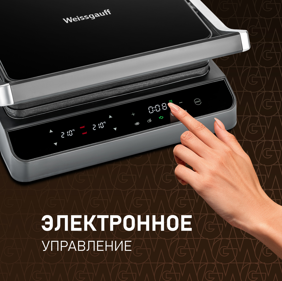 Электрогриль Weissgauff, выполненный в дизайне "черное закаленное стекло" - это компактный и эффективный помощник в приготовлении как профессиональных стейков, так и хрустящего бекона, ароматной птицы, аппетитной рыбы и прочих кулинарных шедевров, пробуждающих аппетит настоящего гурмана!