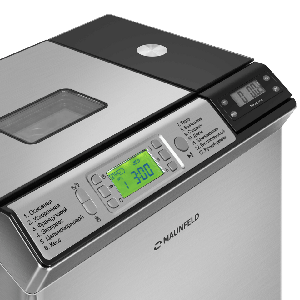 Хлебопечь MAUNFELD MBM-900DSS оснащена удобным диспенсером. Начинка автоматически будет добавлена в тесто на нужном этапе замеса. Не отвлекайтесь от своих дел, доверьтесь MAUNFELD.