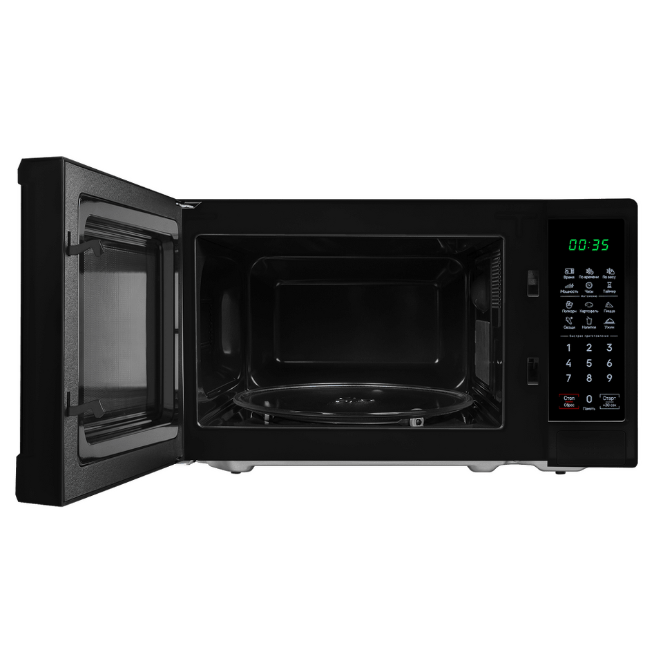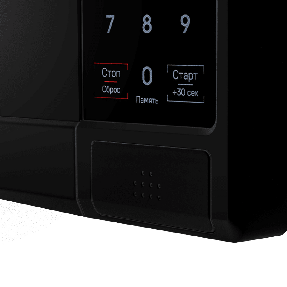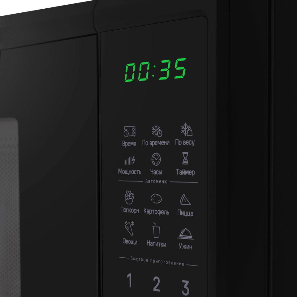 Отдельностоящая микроволновая печь с электронной панелью управления, дисплеем.