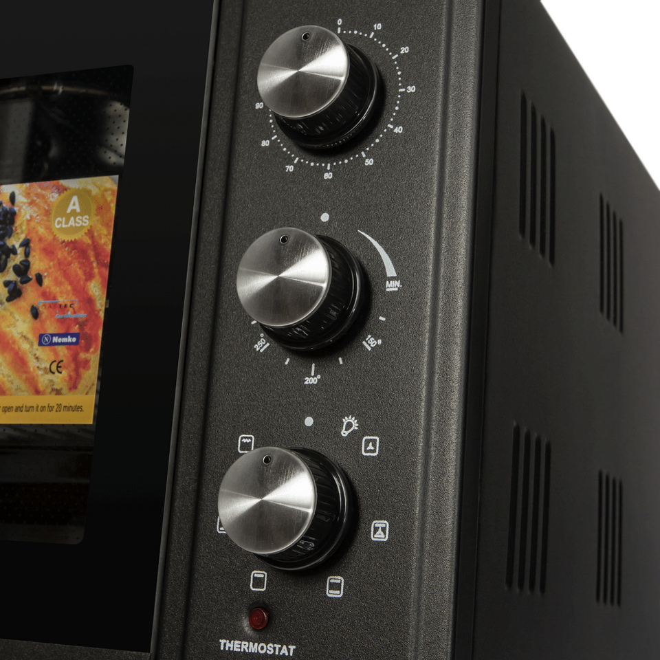 таймер (90 мин) позволит установить время приготовления. По окончании заданного времени печь автоматически выключится.