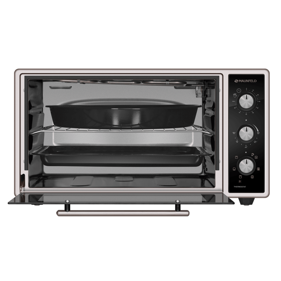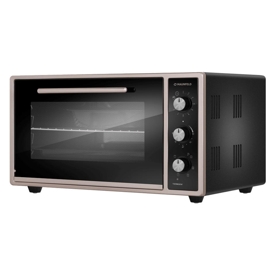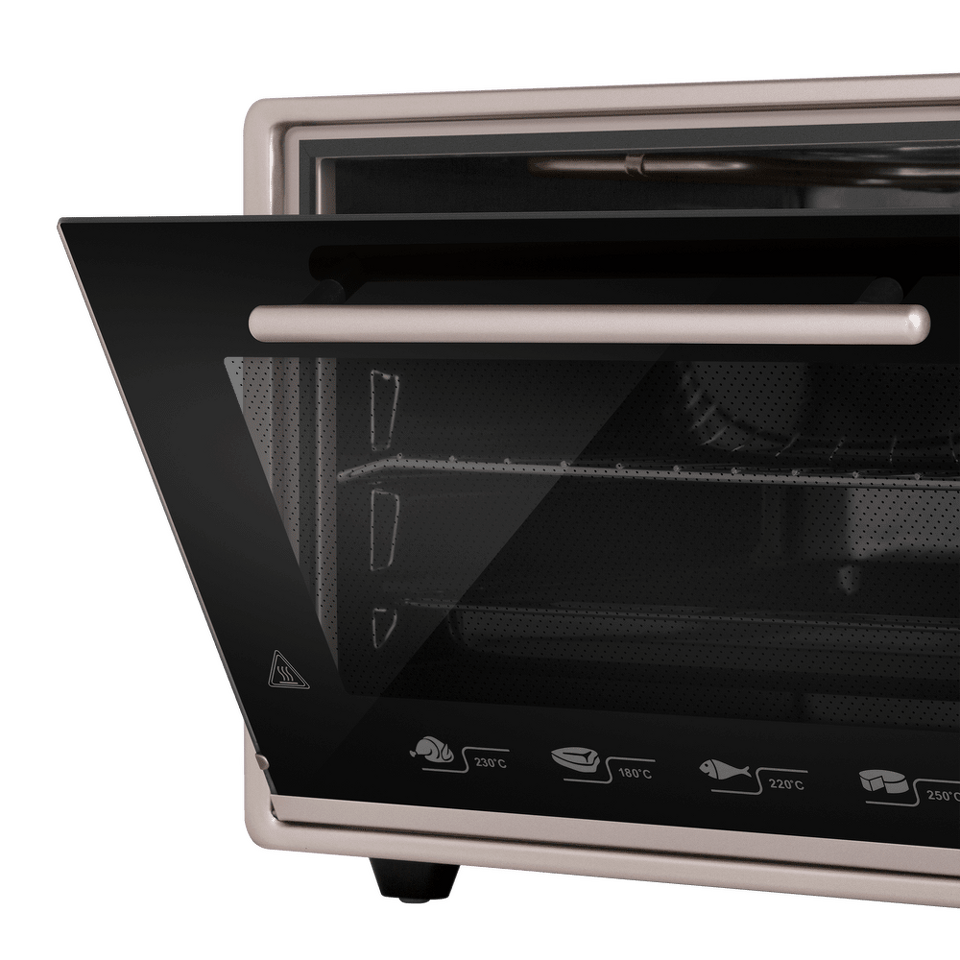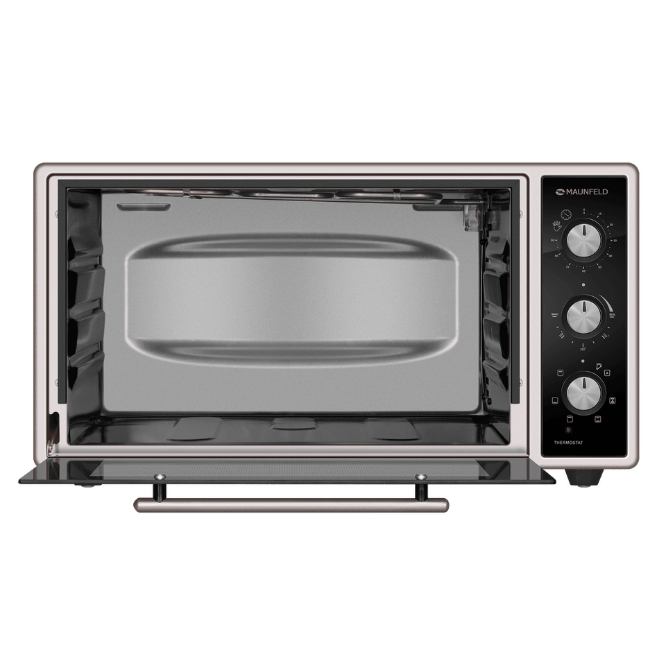 Полезный объем мини-печи довольно большой – целых 45 литров, готовить можно одновременно на 3 уровнях. Вы можете использовать традиционный верхний и нижний нагрев, комбинируя их с функциями конвекции и гриля. Всего предусмотрено 7 функций приготовления. Благодаря яркой подсветке можно хорошо рассмотреть содержимое всех противней и контролировать процесс готовки, не открывая дверцу. Мини-печь оснащена таймером, автоматически отключающим прибор по окончании времени приготовления.Утапливаемые поворотные ручки PUSH PULL.