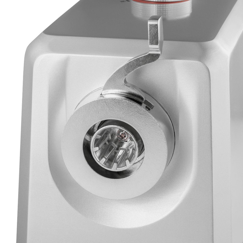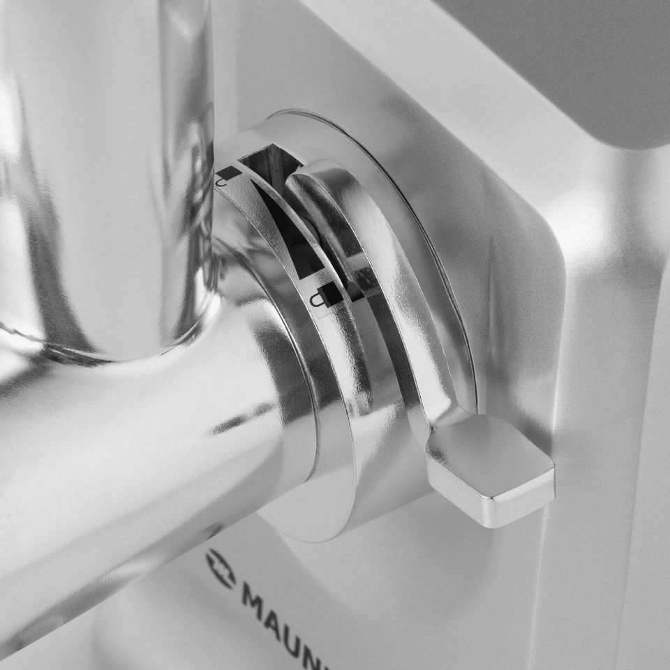Простой переключатель скоростей позволяет включать/выключать мясорубку, а также выбирать режим реверса, в случае застревания ингредиентов.