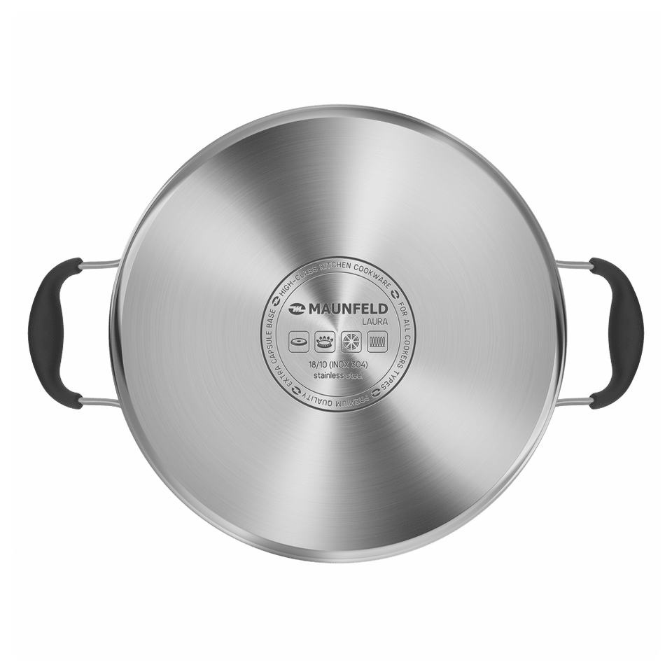 Посуда из нержавеющей стали неизменно пользуется любовью хозяек и поваров, которые знают толк в приготовлении вкусной еды. Продукты, приготовленные в посуде MAUNFELD серии LAURA из нержавеющей стали, надолго сохраняют питательные свойства, витамины, натуральный аромат и вкус приготовленных блюд. В них можно готовить первые блюда, вареные овощи, макароны, каши, пельмени, компоты и многое другое.